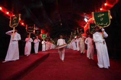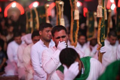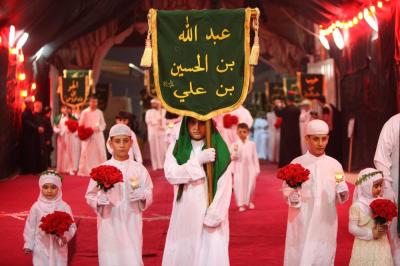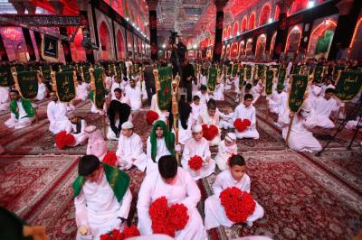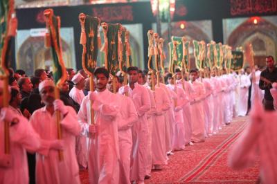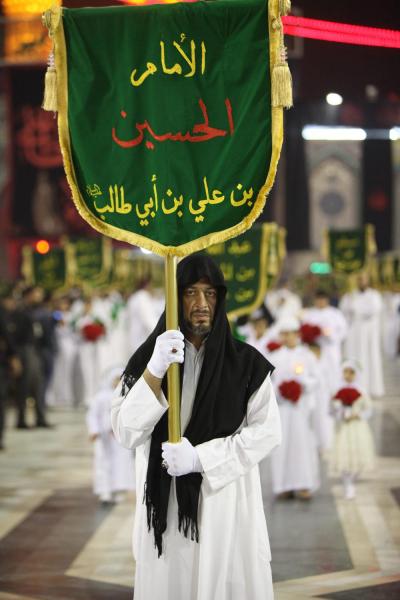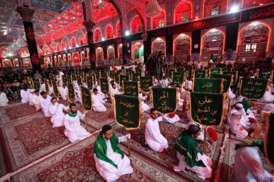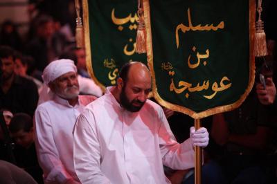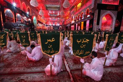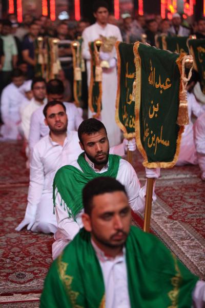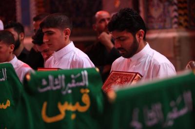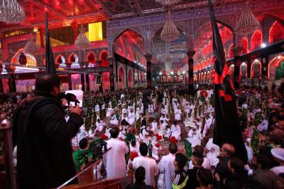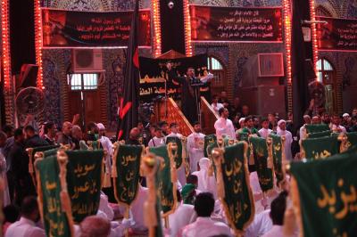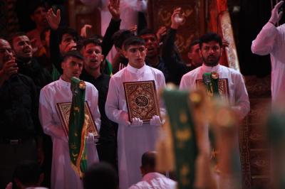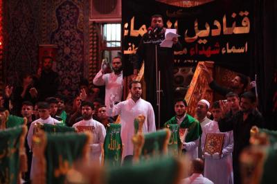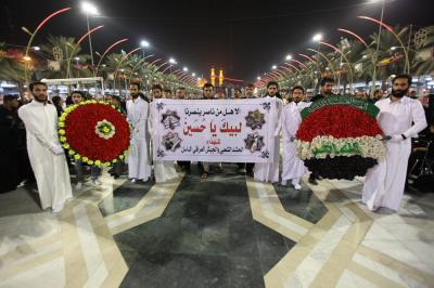 وخلال مسيرة الموكب صدحت الحناجرُ بالعبارات التي جسّدت عظمة هذه الواقعة واختنقت العبرات وهم يشقّون صفوف الزائرين المعزّين، لتتعالى الأصوات بالبكاء والنحيب عند دخول حرم سيد الشهداء أبي عبدالله الحسين(عليه السلام) ليَختَتِم هذا الموكبُ مراسيمَه بمرثيّةٍ ومجلسِ عزاءٍ حسينيّ داخل الصحن الشريف.