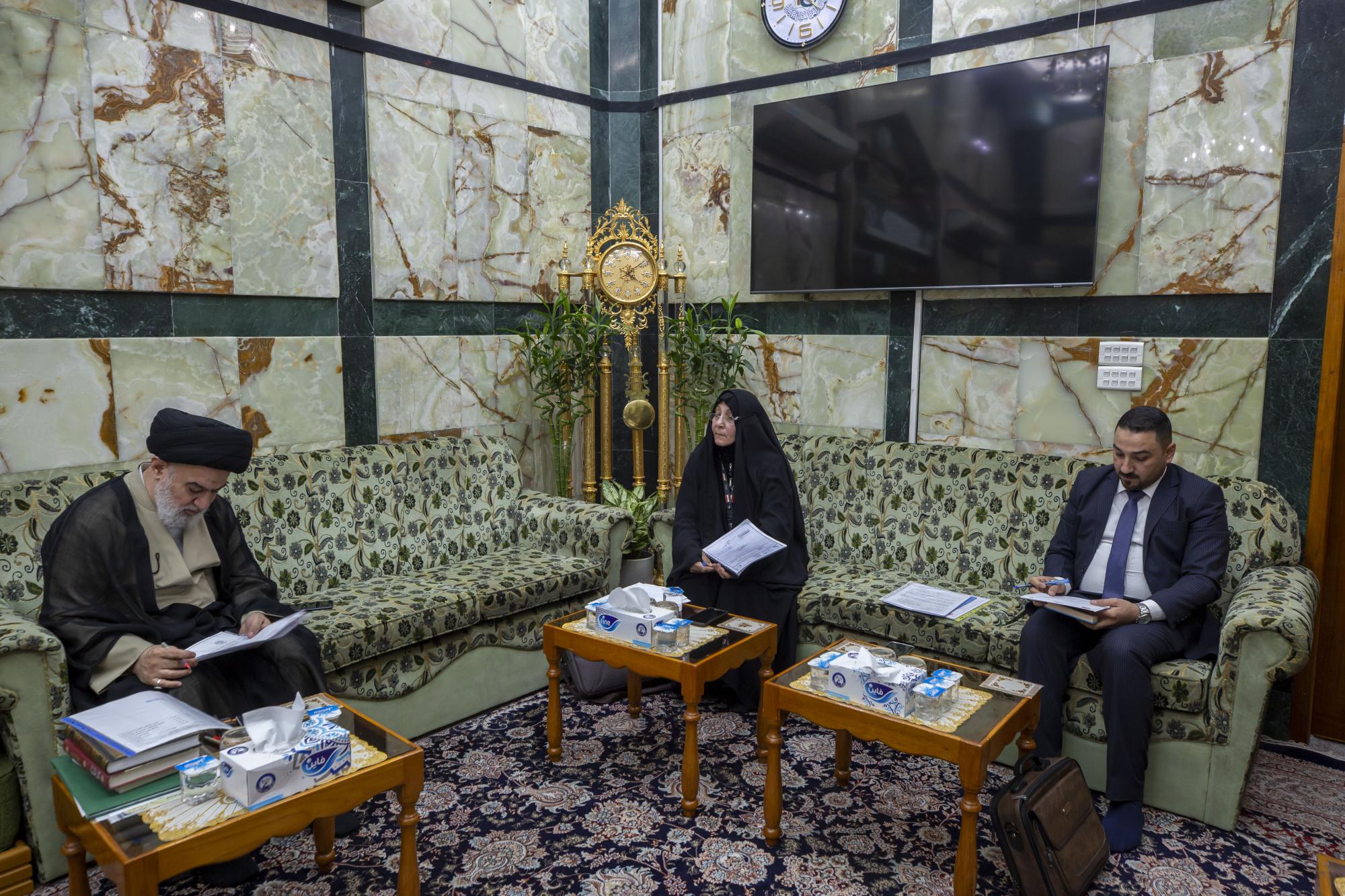 جاء ذلك في أثناء استقباله رئيسة القسم التابع للعتبة المقدسة الدكتورة هيفاء التميمي، ومعاون رئيس القسم السيد ماهر خالد، وبحضور المشرف على القسم السيد جواد الحسناوي، واستماعه إلى شرح مفصل عن جهود القسم وخدماته المقدمة في زيارة الأربعين المليونية.