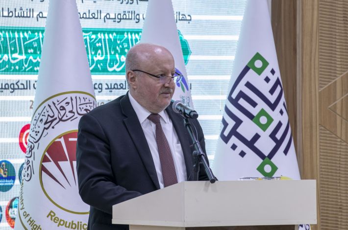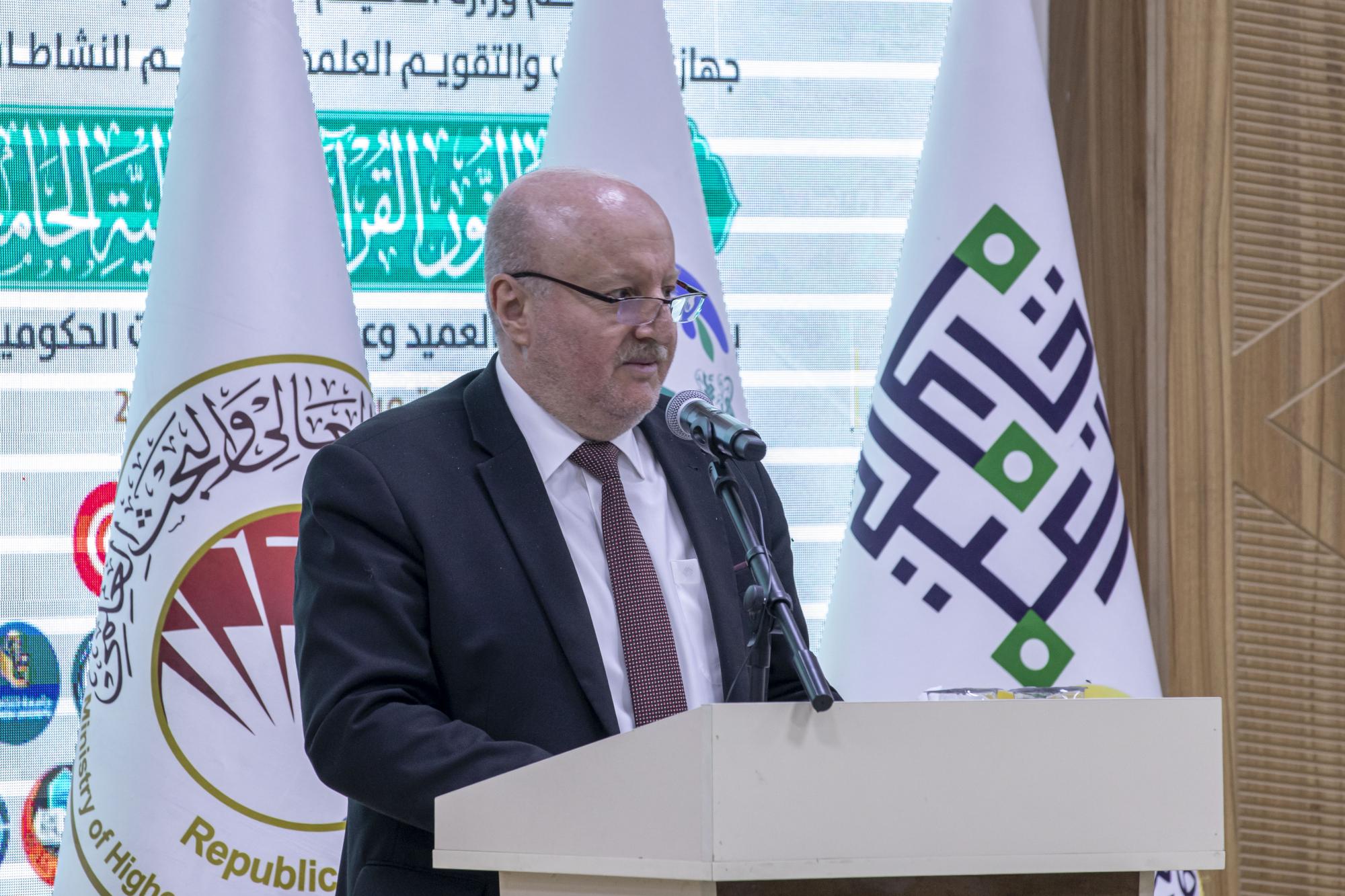واختتم كلمته بالقول "أتقدّم بأسمى عبارات الترحيب بضيوف العراق من الوفود الجامعية المشاركة، من تونس ولبنان وإيران ونيجيريا، وإن اجتماعنا اليوم تحت راية القرآن الكريم هو رسالة للعالم، بأن جامعاتنا تمضي بثباتٍ نحو بناء الإنسان المتكامل الذي يجمع بين نور المعرفة وهدي الإيمان".