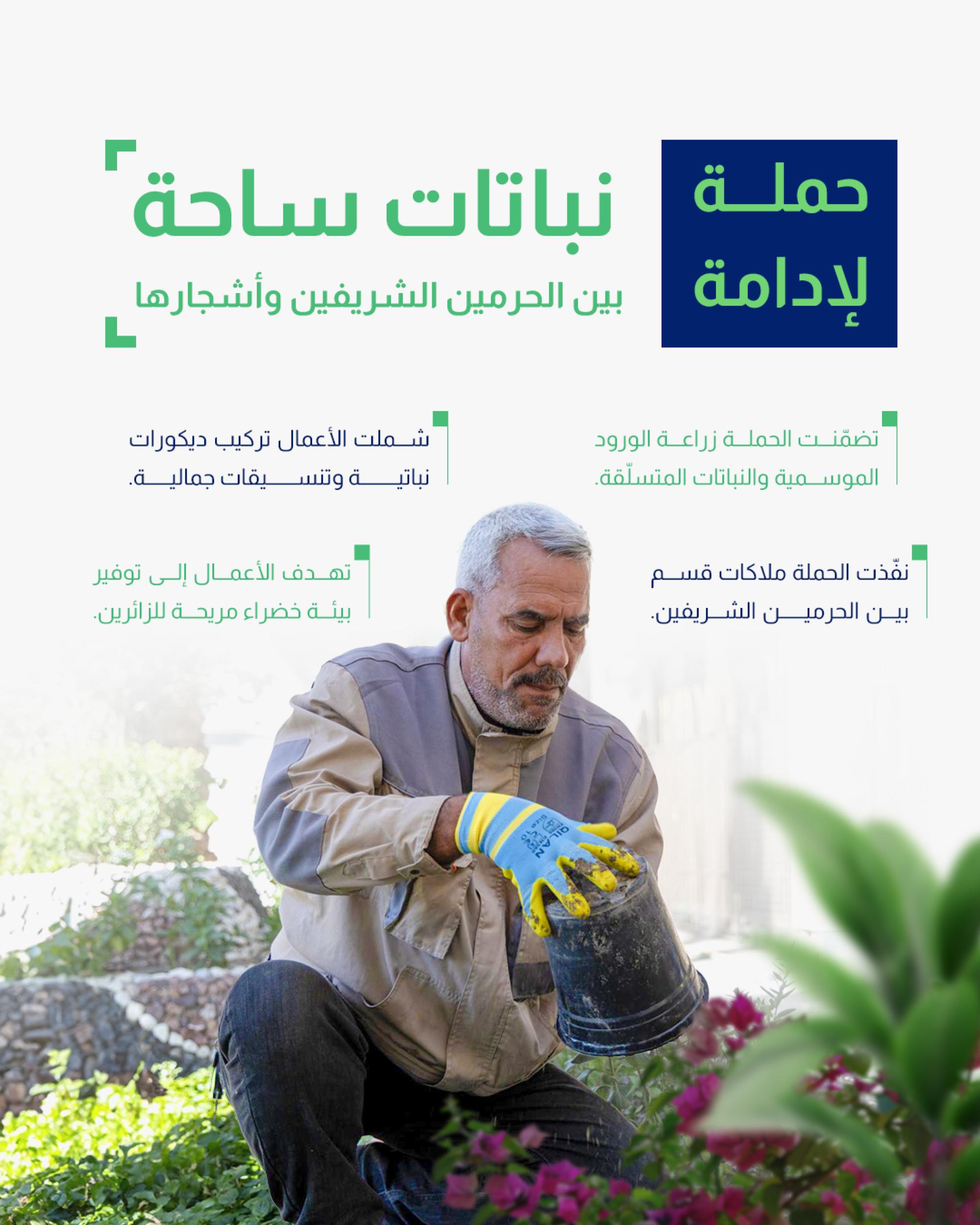 بین الحرمین کے پودوں اور درختوں کی نگہداشت کے لیے جاری کاوشیں
