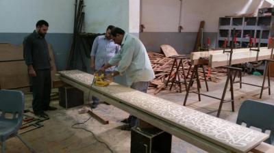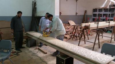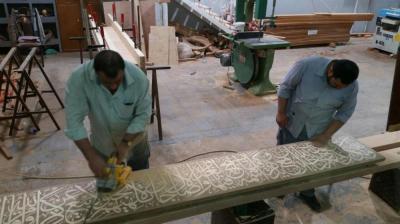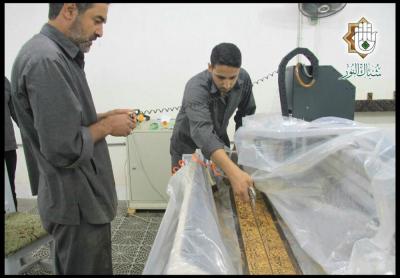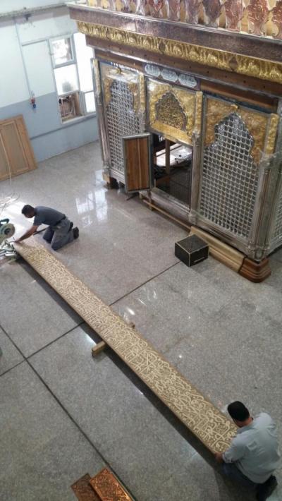 بوتيرةٍ متصاعدة وهمّةٍ عالية من قبل كوادر مصنع صناعة الأضرحة والشبابيك التابع للعتبة العباسيّة المقدّسة تشهد الأعمال الخاصّة بصناعة الشبّاك الجديد لضريح أبي الفضل العباس(عليه السلام) يوماً بعد آخر تقدّماً واضحاً بشقّيها التصنيعيّ والتركيبيّ، فبعد أن شارفت أعمال تصنيع أجزاء وقطع الشبّاك الشريف من الخارج على الانتهاء بوشر وبنفس الهمّة لتصنيع أجزائه الداخلية التي لا تقلّ أهميّةً عن قريناتها أيضاً، حيث تمّ بحمد الله تعالى وببركات أبي الفضل العباس(عليه السلام) الانتهاء من تصنيع الكتيبة القرآنية الواقعة داخل الشبّاك الشريف والتي تحيط بأركانه الداخلية الأربعة والتي صُنعت بطريقةٍ فنيّة رائعة وبما يتلاءم مع قيمة هذا المنجز الكبير.