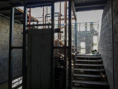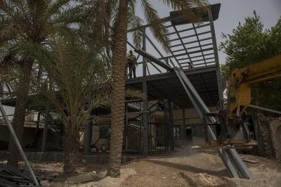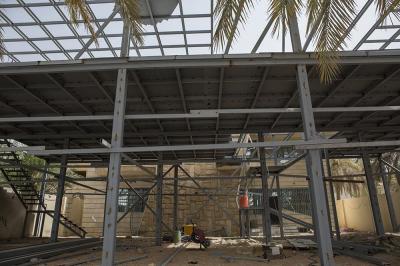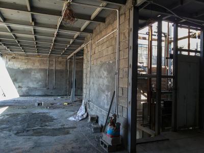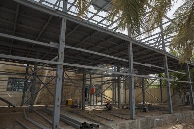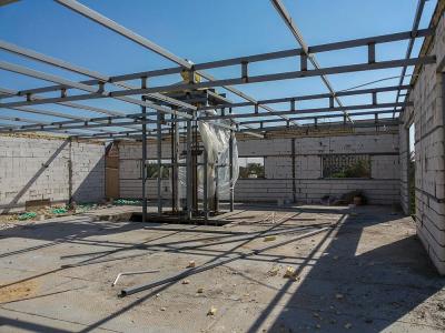 موضحاً: " اشتركت في اعمال الموقع ايضاً شعبة الإنشائية والتبريد والكهرباء وابتُدِئ العملُ بتسوية الأرض ومرحلة صبّ الأرضية والأسس ليتمّ بعد ذلك تثبيت الهيكل الحديدي الخاص بالمشروع حسب الشكل المخطّط له، ليتمّ بعد ذلك تقطيع الهيكل بواسطة مادة الثرمستون وطلسه باستخدام مواد البناء المعروفة كالإسمنت وباقي المواد بالتوازي مع إنجاز شعبة الكهرباء عمليات التسليك الكهربائي كافة، والعمل يسير وفق الخطّة الموضوعة من قبل القسم ونحن نعمل بشكلٍ متواصل ونسعى للانتهاء من أعمال المشروع في فترةٍ قياسية من أجل إشغالها من قبل الجهة المستفيدة".