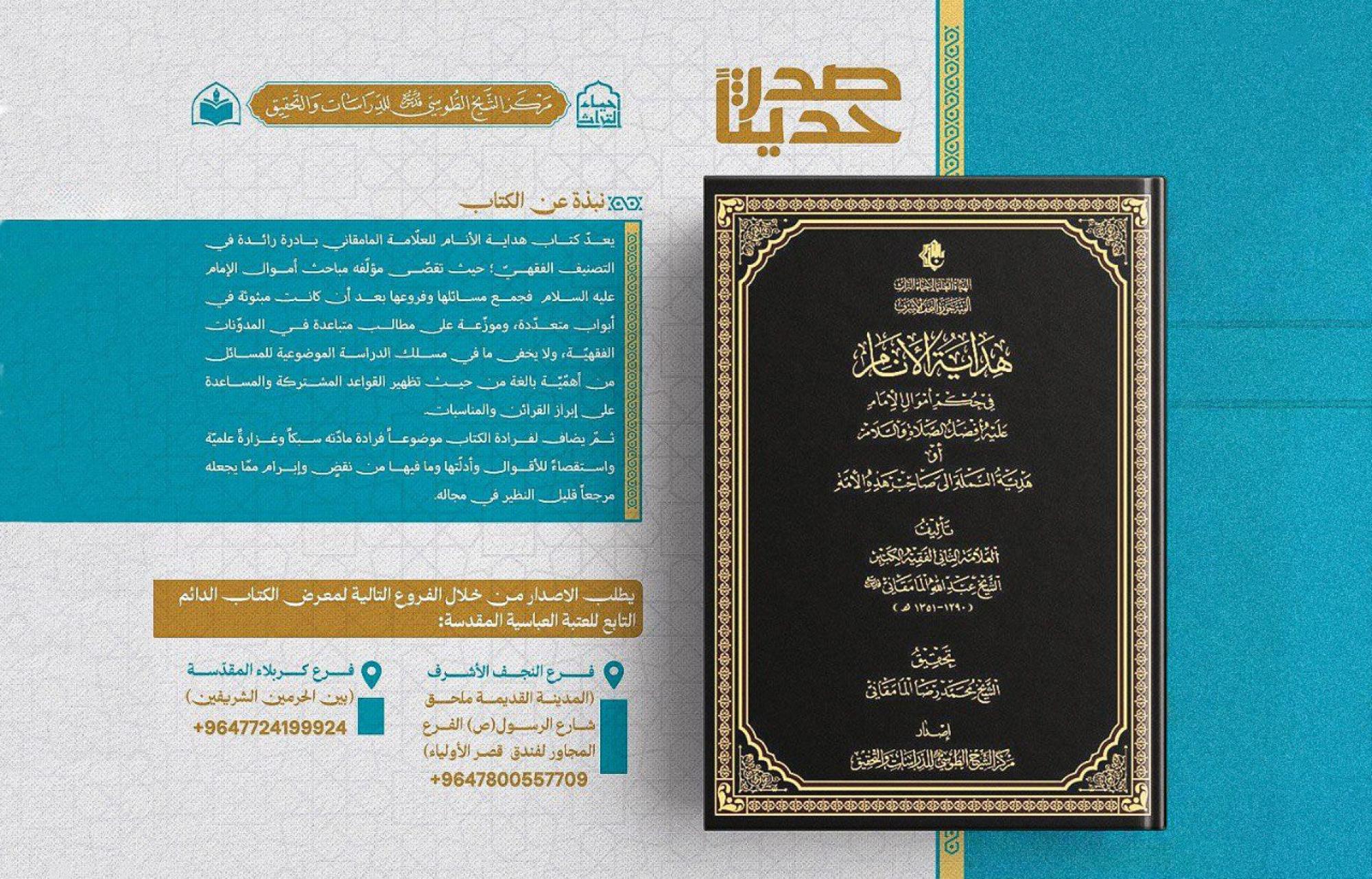 Le comité suprême pour la renaissance du patrimoine du sanctuaire d'al-Abbas (p) a récemment publié une enquête sur l'ouvrage « Guidance de l'humanité sur le jugement relatif aux biens de l'Imam (sur lui la paix) ou le don de la fourmi au Maître de cette nation ».