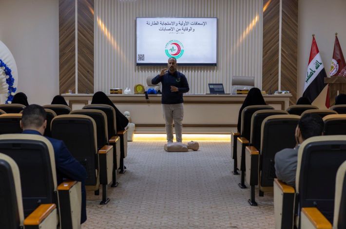 Ofis müdür yardımcısı Firdevs Ali Hassûn hanım açıklamalarda bulundu. Merkezin anaokulu ve kreşte çalışan kadın personel için ilk yardım eğitim kursunu düzenlediğini söyledi. Amaç çocuklarda meydana gelebilecek acil durumlarla başa çıkma konusunda gelişmelerini sağlamak.