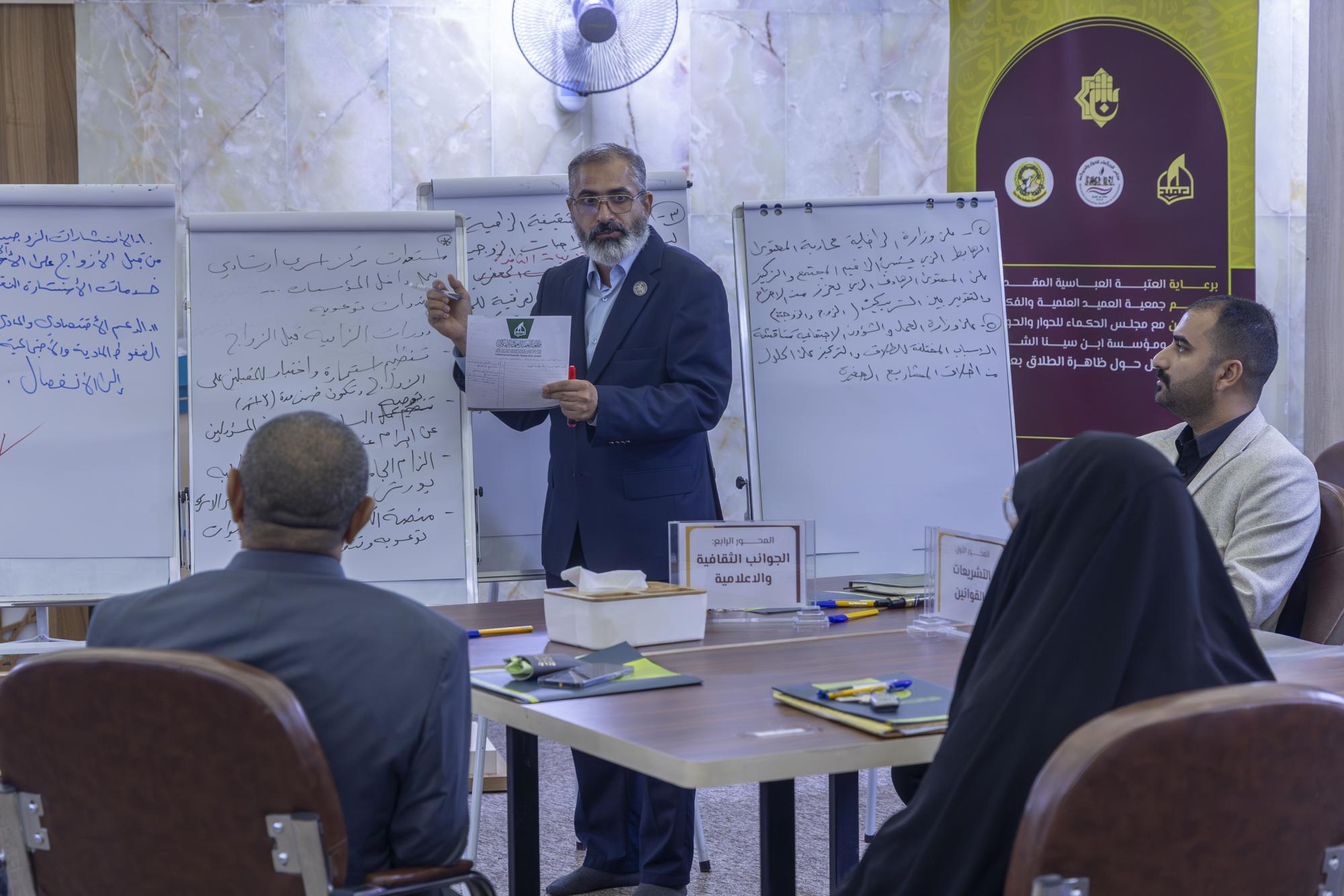 Mukaddes Hz. Abbas (a.s.) Türbesi'nin himayesinde El-Amîd İlim ve Fikir Derneği'nin düzenlediği boşanma olgusu hakkındaki bilimsel çalıştay etkinlikleri kapsamında, akşam saatlerinde bir araştırma oturumu daha düzenlendi.