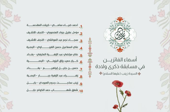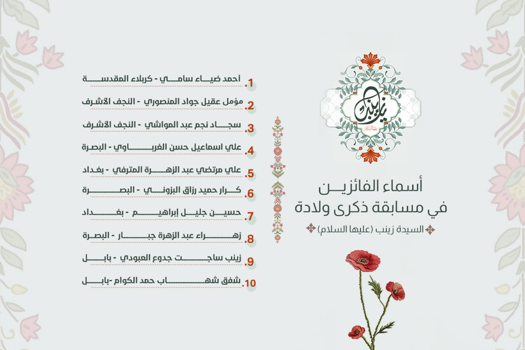 Uongozi mkuu wa Atabatu Abbasiyya umetangaza majina ya washindi wa shindano la waliofaulu kwenye shindano la kitamaduni katika kuadhimisha kumbukumbu ya kuzaliwa kwa Bibi Zainabu (a.s).