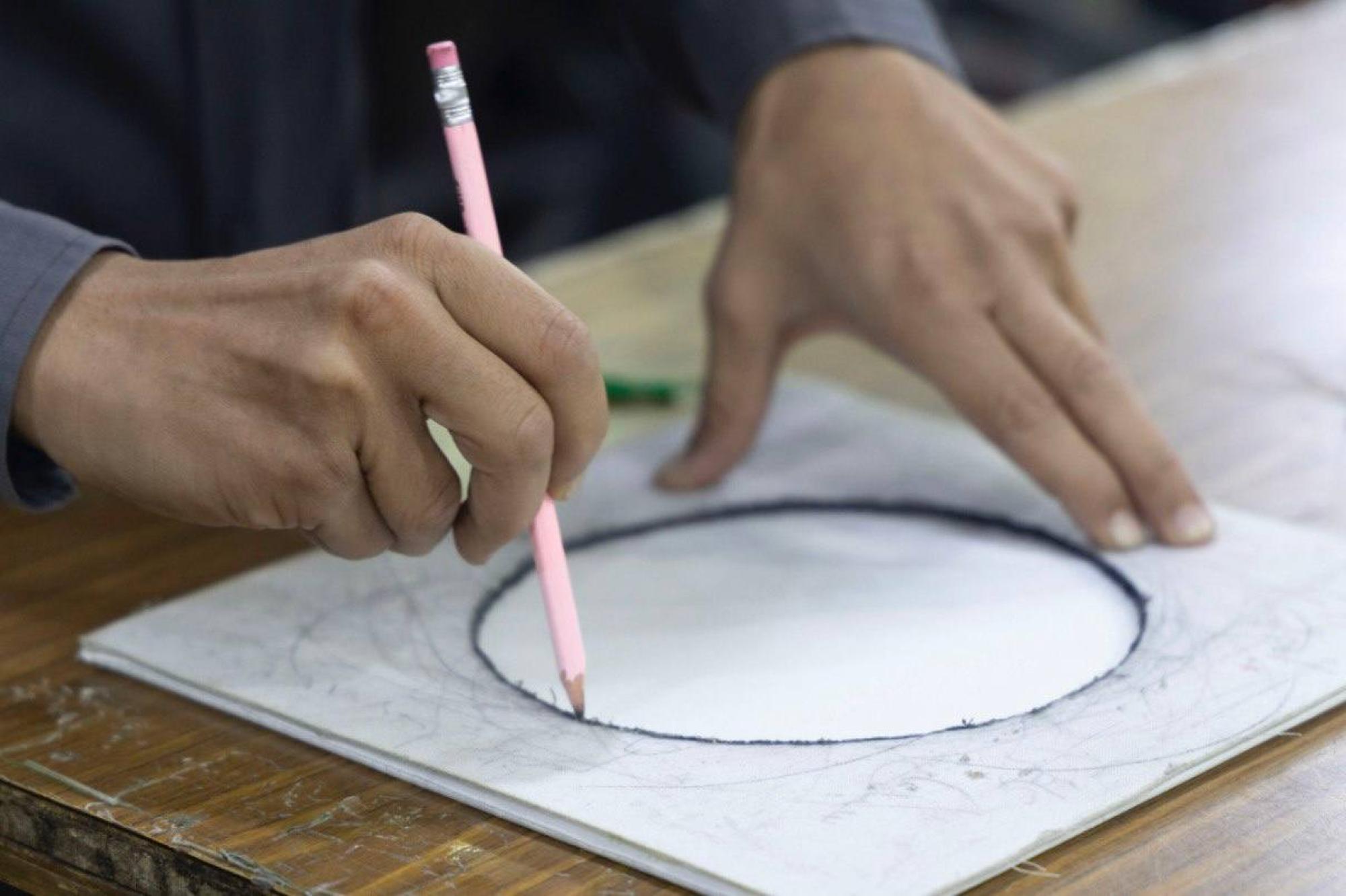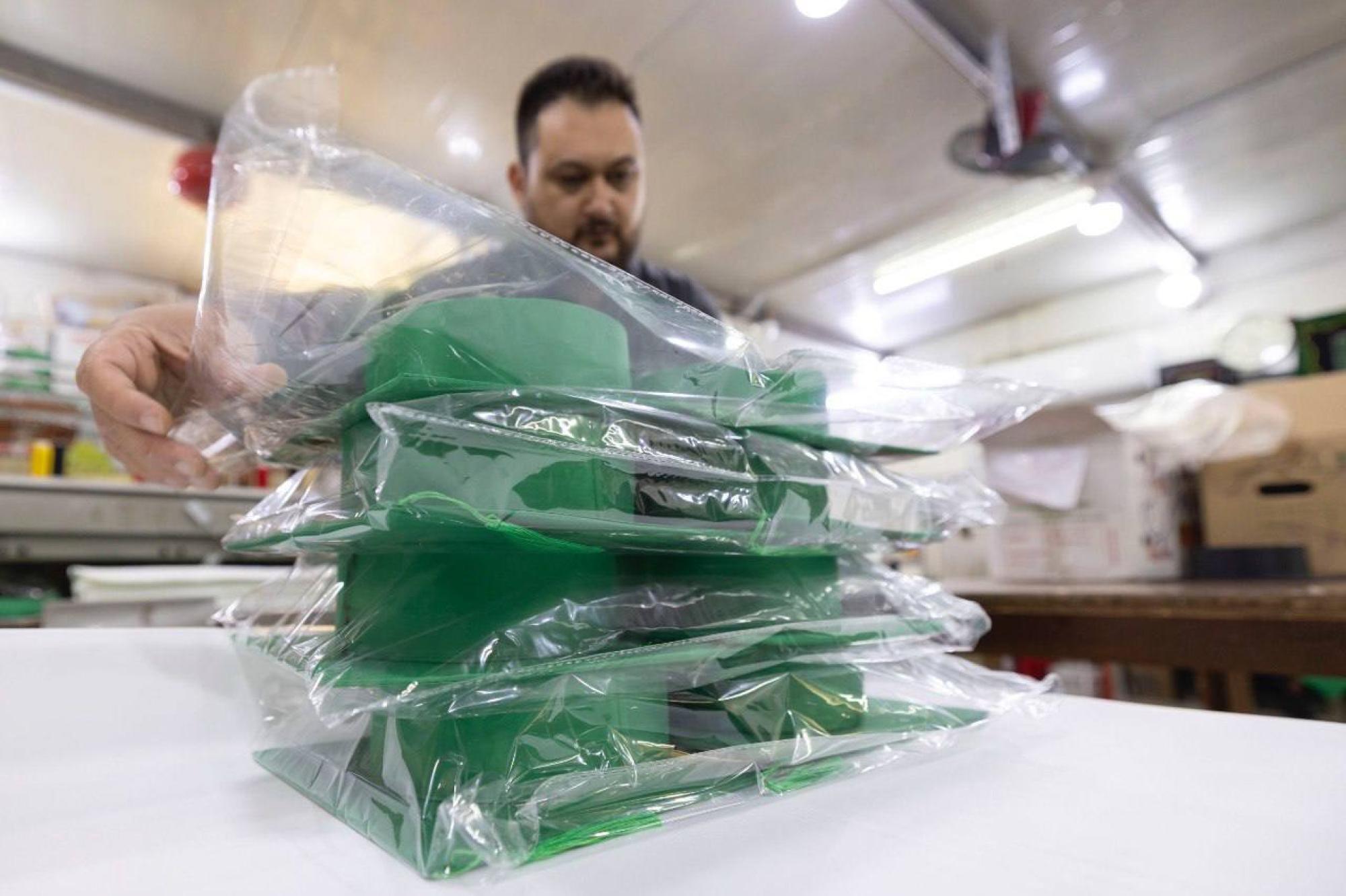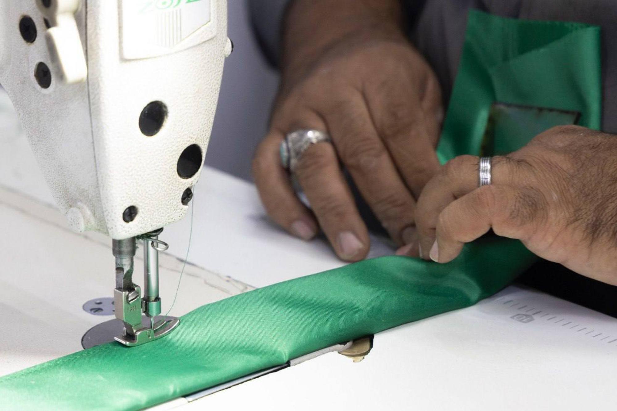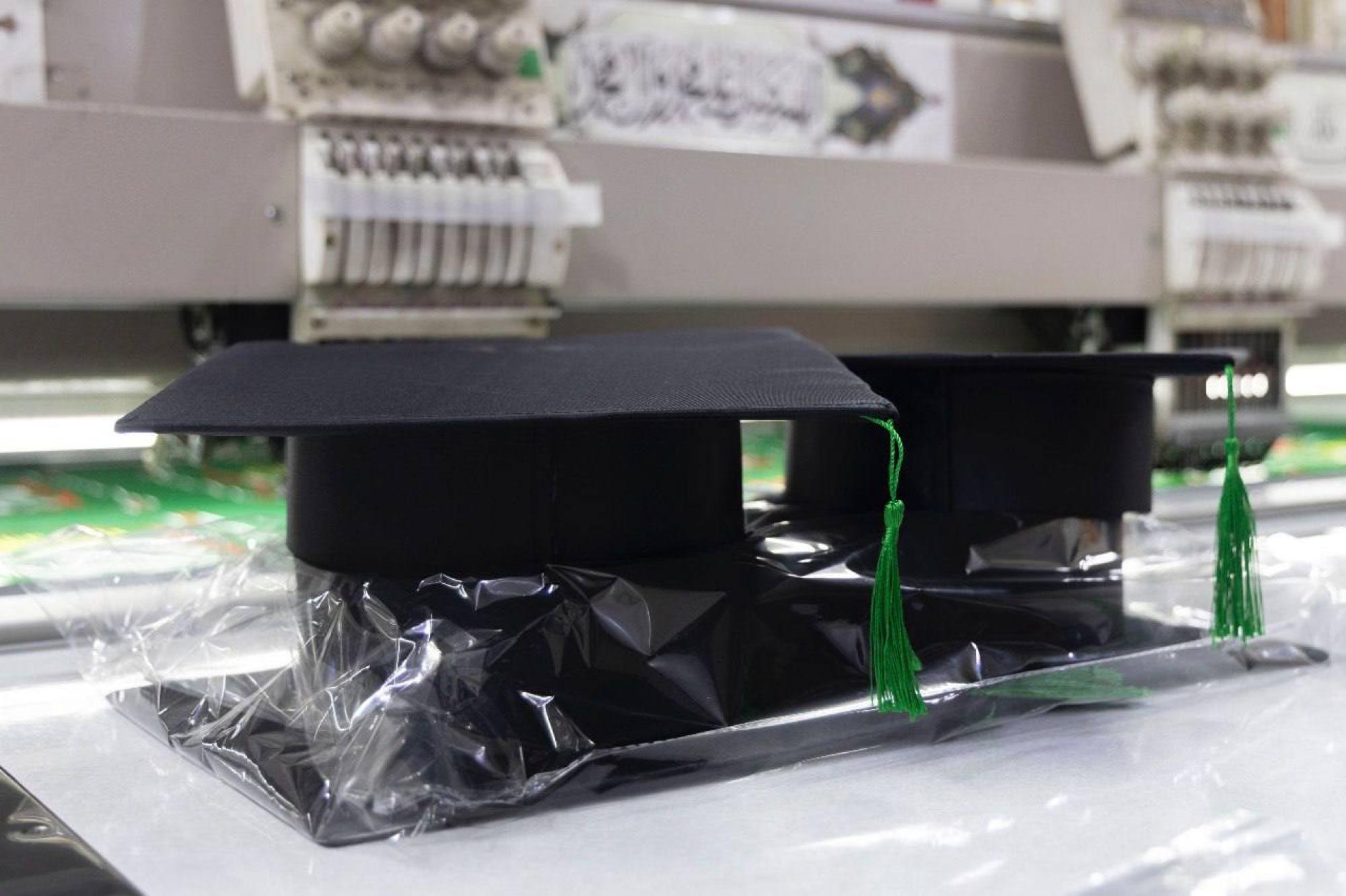 وعملت ملاكات القسم على خياطة خمسة آلاف قبعة سترتديها الطالبات في الحفل، وشكلت بألوان وتطريز خاصّ متسق مع التشكيل العام لجلوس الطالبات وحركتهن.