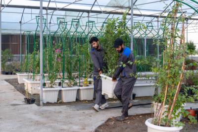 Hamze şöyle devam etti: "Süsleme işlemleri mevsimlik ve kalıcı doğal güllerin, ağaçların ve parlak şekil ve renklerde çeşitli bitkilerin dağıtılmasını kapsadı. Ayrıca törene ayrılan sahneler süslendi."