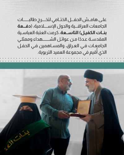 Atabatu Abbasiyya imempa zawadi muwakilishi wa vyuo vikuu na waliochangia kufanikisha mahafali ya wahitimu mabinti wa Alkafeel awamu ya tisa