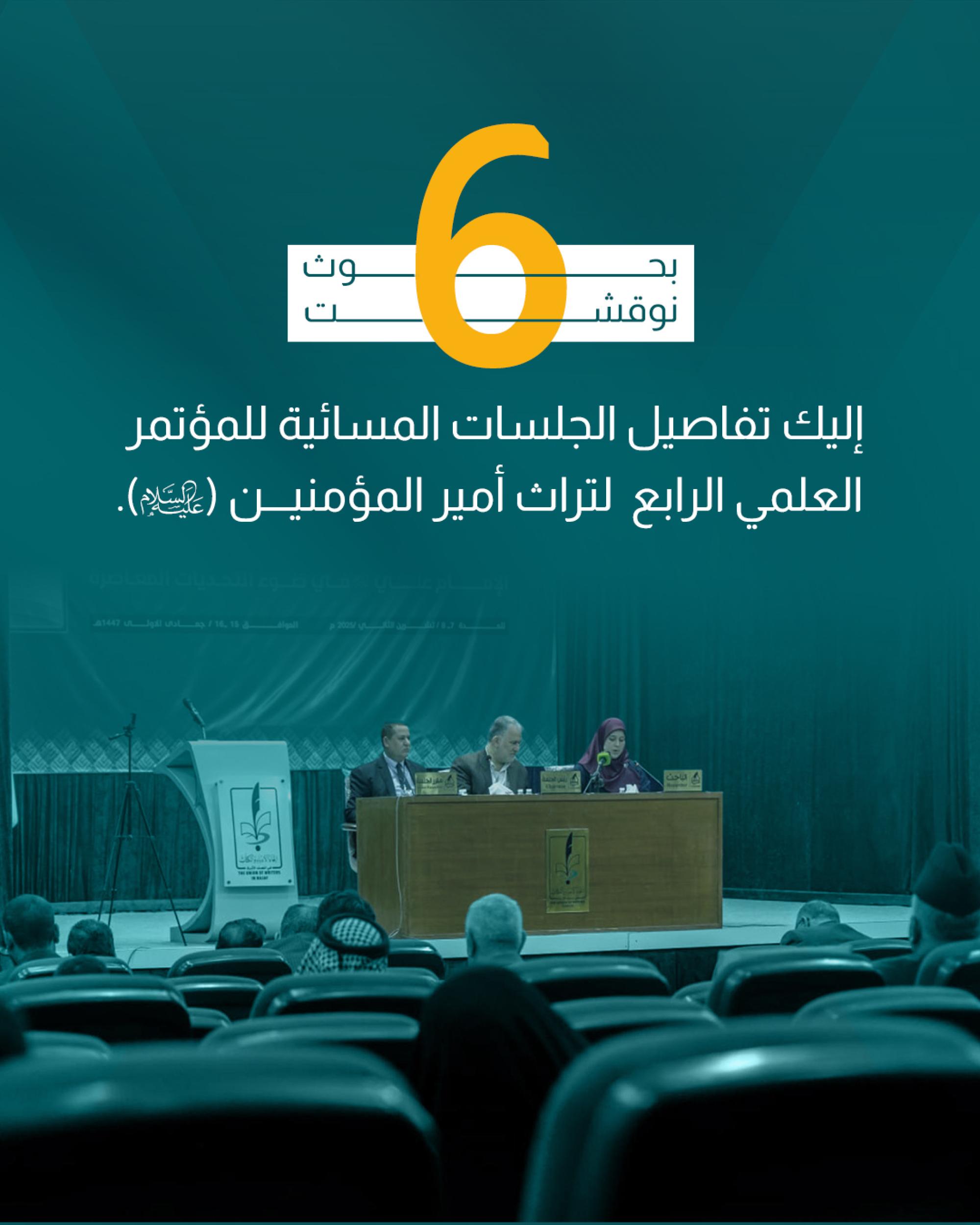 Voici le programme des séances du soir de la quatrième conférence scientifique sur l'héritage du Commandeur des Croyants (que la paix soit sur lui).