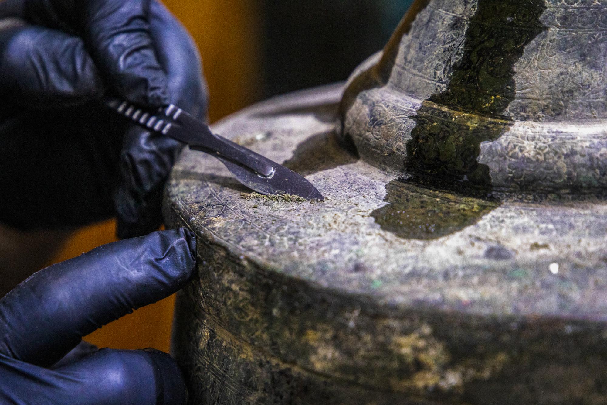 Pour sa part, M. Sajjad Hassan Ali, responsable du laboratoire du musée, a expliqué que « la pièce présentait des couches d'oxydation accumulées, qui ont été éliminées mécaniquement sans altérer sa surface d'origine. Le socle a également été restauré et recouvert de produits de conservation afin de le protéger des agressions extérieures et d'assurer sa pérennité. »