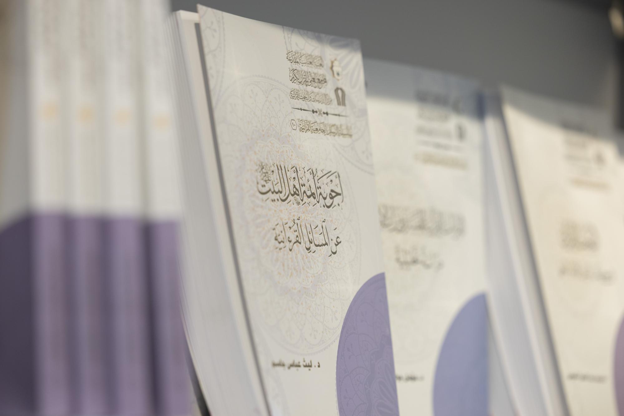 وقال رئيس المجمع الدكتور مشتاق العلي: إنّ "الجناح يضم عددًا من الإصدارات القرآنية ومنها سلسلة الرسائل الجامعية التي تُعنى بالقرآن الكريم من وجهة نظر أهل البيت (عليهم السلام)، والتي شهدت إقبالًا واسعًا من مرتادي المعرض".