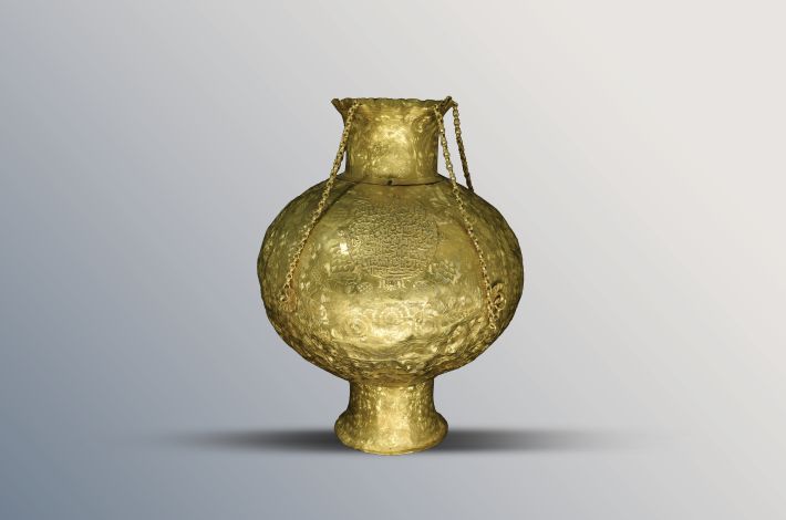 كشف متحفُ الكفيل للنفائس والمخطوطات في العتبة العبّاسية المقدّسة، تفاصيل قنديلٍ ذهبيّ نفيس يتجاوز عمره مئة عام.