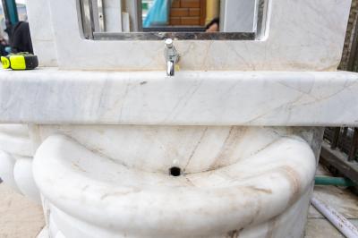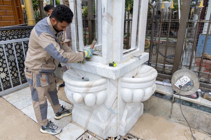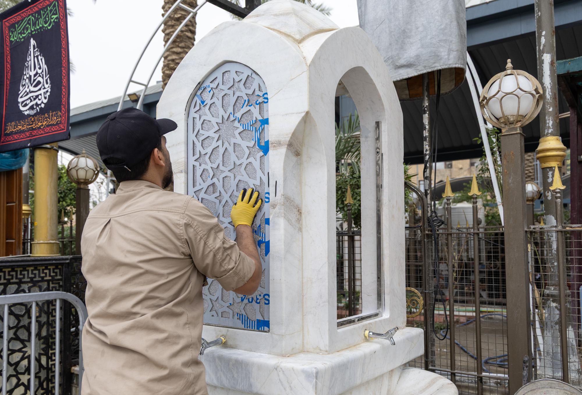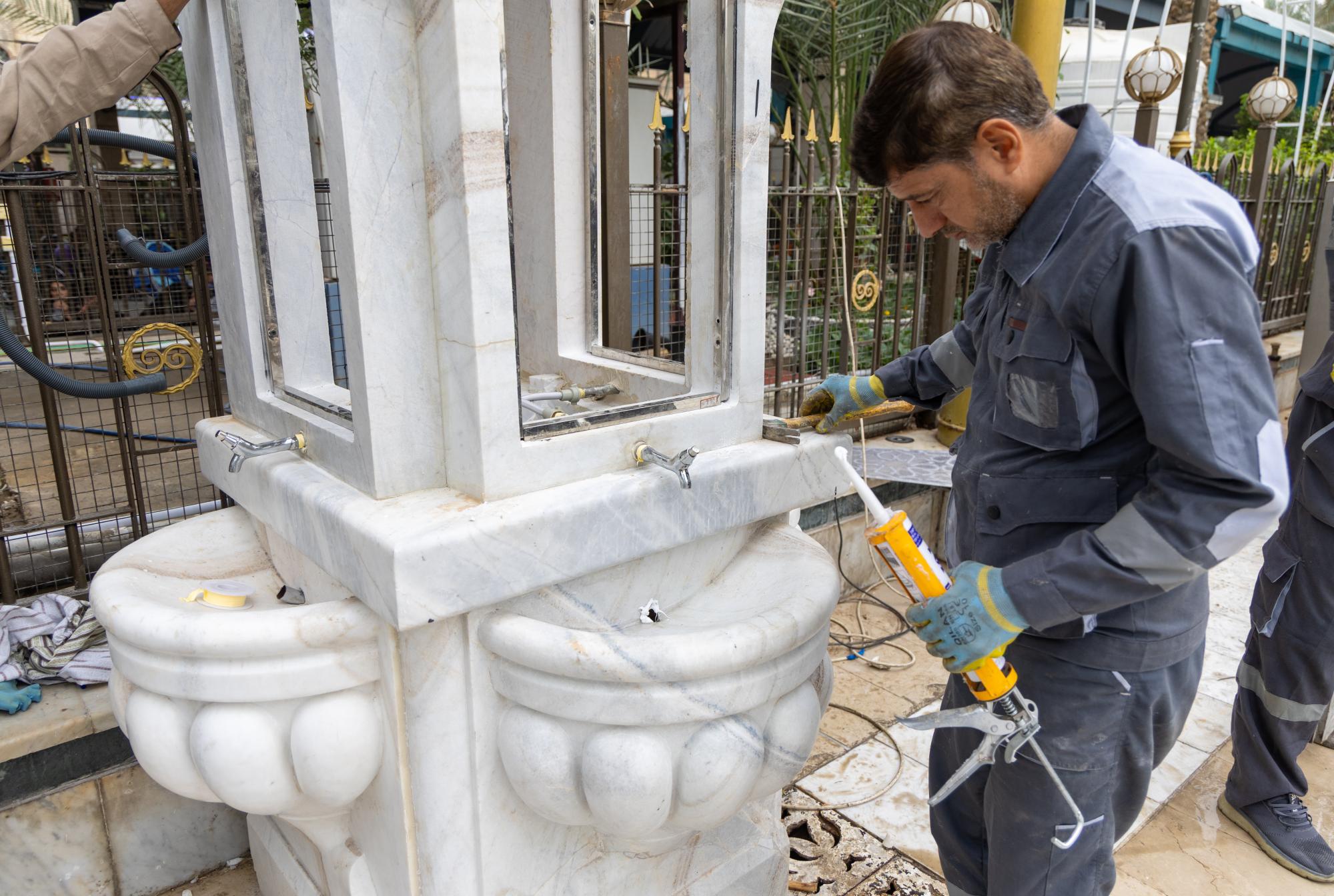 وأضاف أن "المناهل الجديدة مصنوعة من المرمر ومن مناشئ عالمية رصينة، وتمتاز بمتانةٍ عالية ومظهرٍ أكثر جمالًا وتناسبًا مع قدسية المكان".