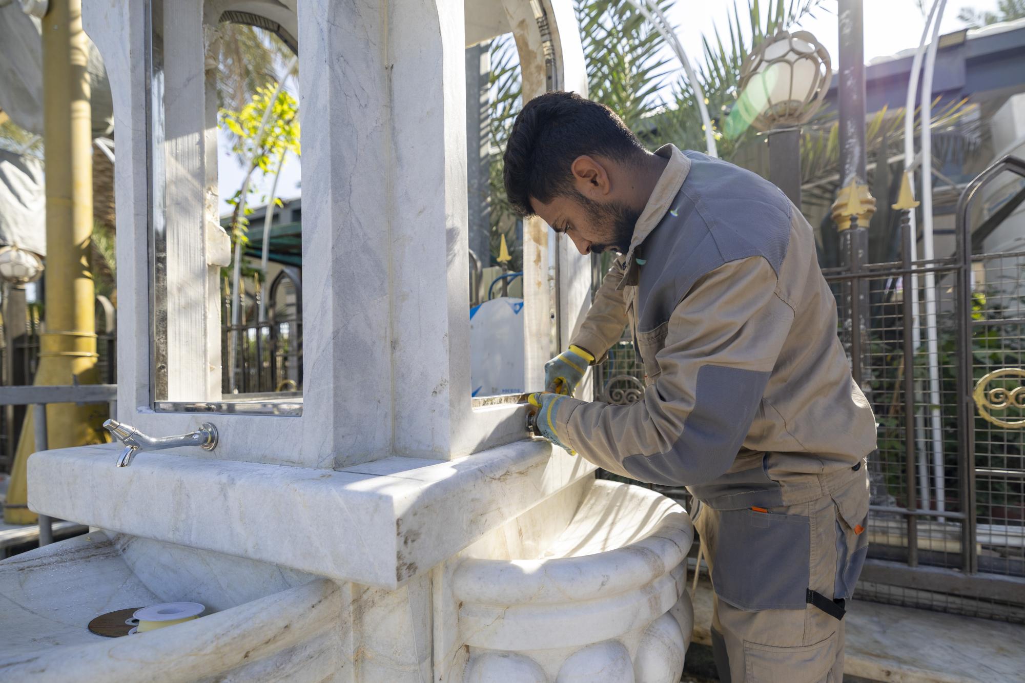 وأضاف أنَّ "المناهل الجديدة سهلة الصيانة والتنظيف، وتتميز بمظهر لائق ومتناسق مع قدسية المكان"، مؤكداً أنَّ "عدد المناهل المشمولة في المرحلة الأولى يبلغ عشرة مناهل سيتم استبدالها بالكامل، على أن تتبعها مراحل لاحقة وفق الجدول المعد للمشروع لصيانة العشرة المتبقية".
