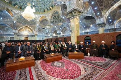وضم الوفد معاون رئيس قسم الشؤون الدينية الشيخ عادل الوكيل، ومعاون رئيس قسم الهدايا والنذور السيد محمد جلوخان، إلى جانب مسؤول شعبة السادة الخدم السيد هاشم الشامي، وشهد المهرجان حضور جمع من فضلاء الحوزة العلمية في النجف الأشرف، إلى جانب وفود من العتبات المقدسة والمزارات الشريفة، وممثلين عن الهيئات الرسمية وشخصيات عشائرية واجتماعية.
