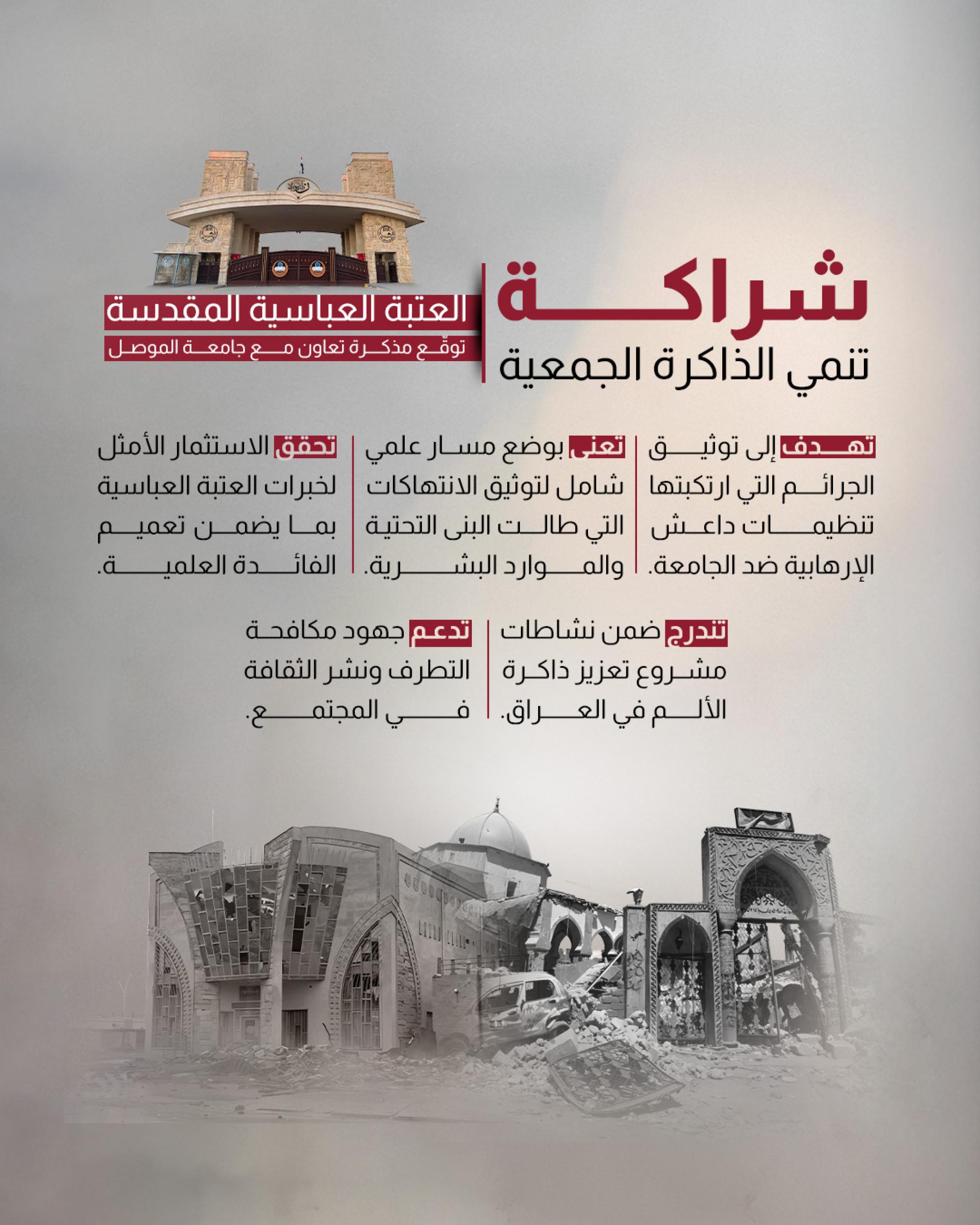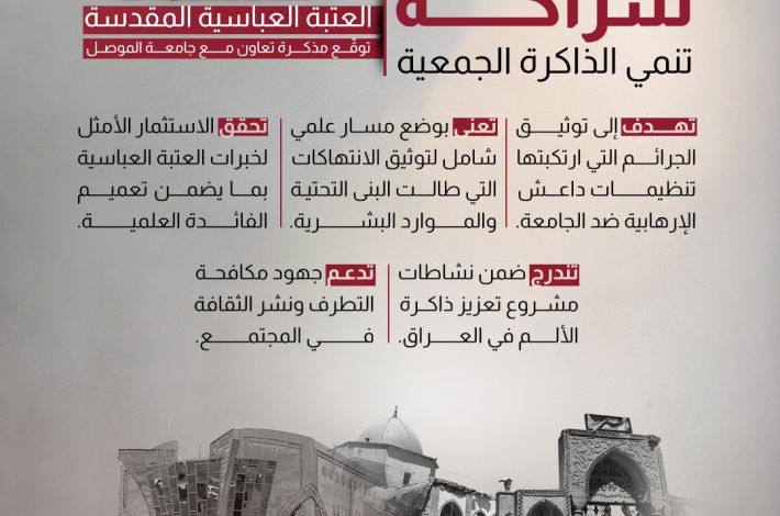 Le sanctuaire saint Al Abbas signe un mémorandum de coopération avec l'université de Mossoul.