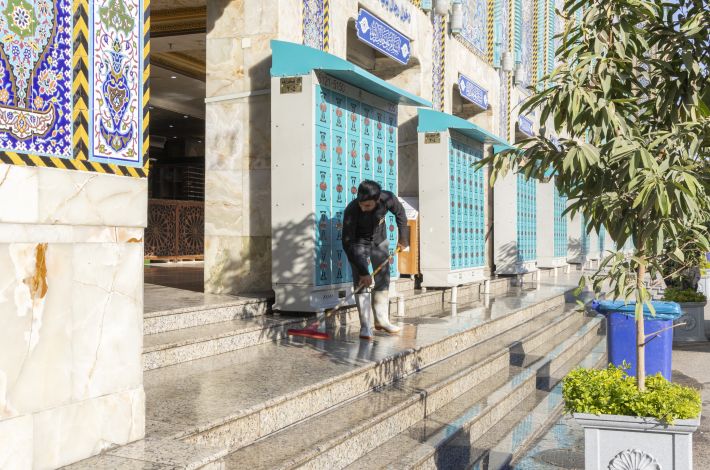 يواصل قسم الشؤون الخدمية في العتبة العباسية المقدسة أعمال غسل محيط صحن مرقد أبي الفضل العباس (عليه السلام) وتنظيفه.
