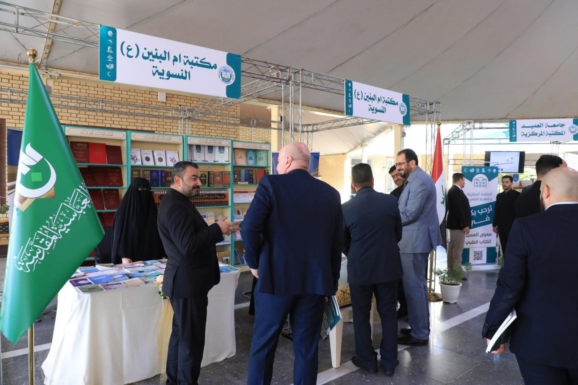 شاركت مكتبة أم البنين (عليها السلام) التابعة لمكتب المتولي الشرعي للشؤون النسوية في العتبة العباسية المقدسة، في معرض الكتاب الطبي بجامعة العميد.