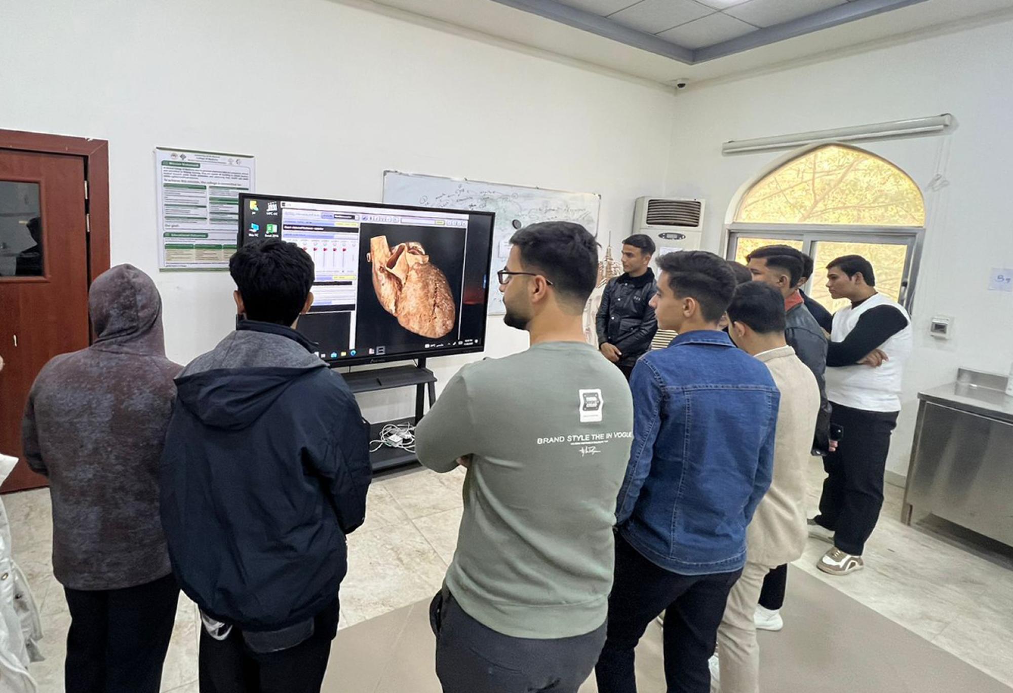 واطلع الطلبة على التجهيزات العلمية الحديثة، بينما قدّم الملاك التدريسي الطبي مجموعةً من الشروح المتخصصة حول آليات عمل الأجهزة، إضافةً إلى عرض معلومات دقيقة تتعلق بجسم الإنسان وأعضائه ووظائفها، مما أتاح للطلاب تجربة معرفية تطبيقية.