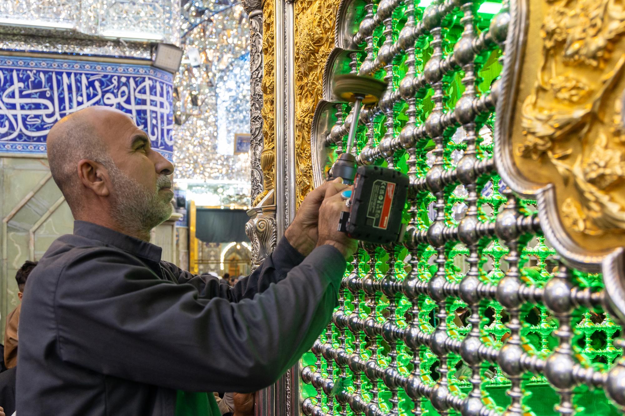 أجرى قسم صناعة شبابيك الأضرحة الشريفة وأبوابها في العتبة العباسية المقدسة أعمال الإدامة لشباك ضريح مرقد أبي الفضل العباس (عليه السلام).