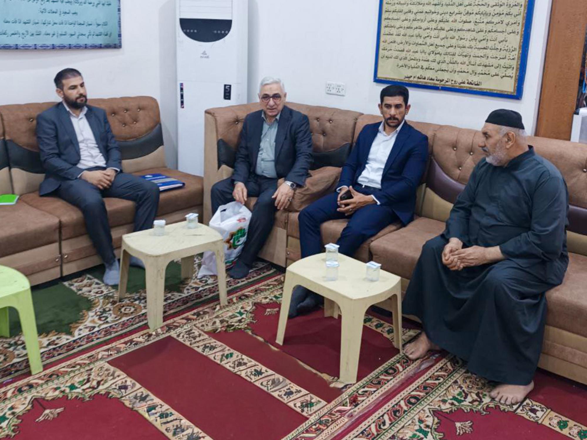 جاء ذلك في أثناء زيارة الوفد إلى عوائل كل من (الشهيد أبو تحسين الصالحي، والشهيد علي سعد الموسوي، والشهيد ياسر الياسري، والشهيد أبو حبيب السكيني، والشهيد عماد الحيدري)، بالتعاون مع فرع هيأة التقاعد الوطنية في البصرة.