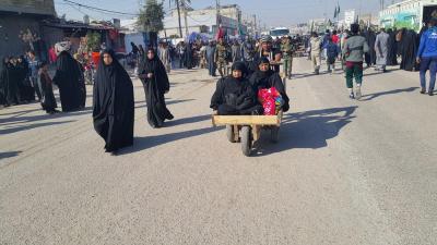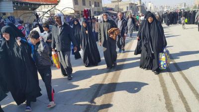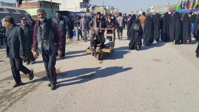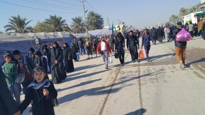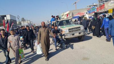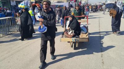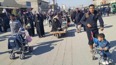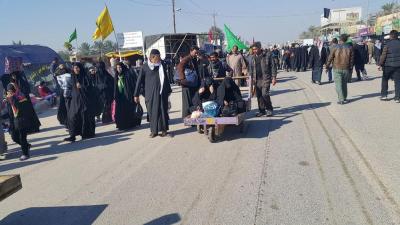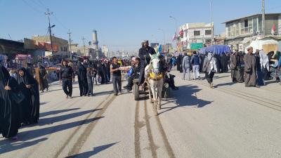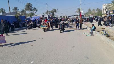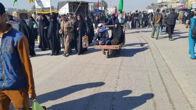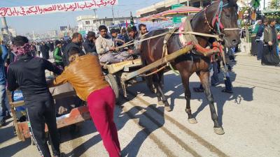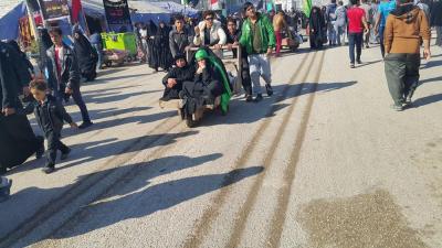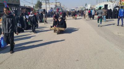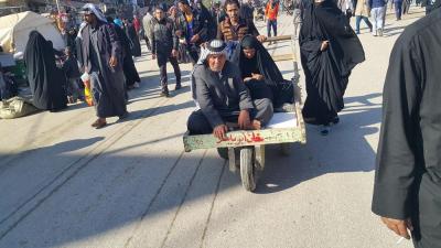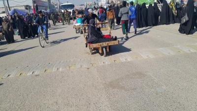 عدستنا رصدت جموعَ الزائرين العائدين بعد تأديتهم مراسيم الزيارة وكان من بينهم رجالٌ كبارٌ بالسنّ ونساء وأطفال بعضهم أسعَفَهُ الحظّ فاستطاع أن يجد وسيلةً للنقل وهي عربة يقودها حصان أو عربة دفع يدويّ أو عجلة نقل صغيرة (ستوتة) وغيرها من الوسائل التي تزيد من المعاناة والجهد.