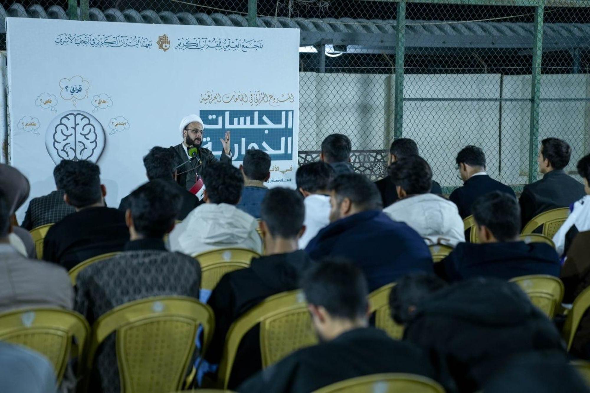 يواصل المجمع العلمي للقرآن الكريم في العتبة العباسية المقدسة إقامة جلساته الحوارية ضمن المشروع القرآني لطلبة الجامعات العراقية بنسخته السادسة للعام الدراسي 2025 – 2026، في النجف الأشرف.