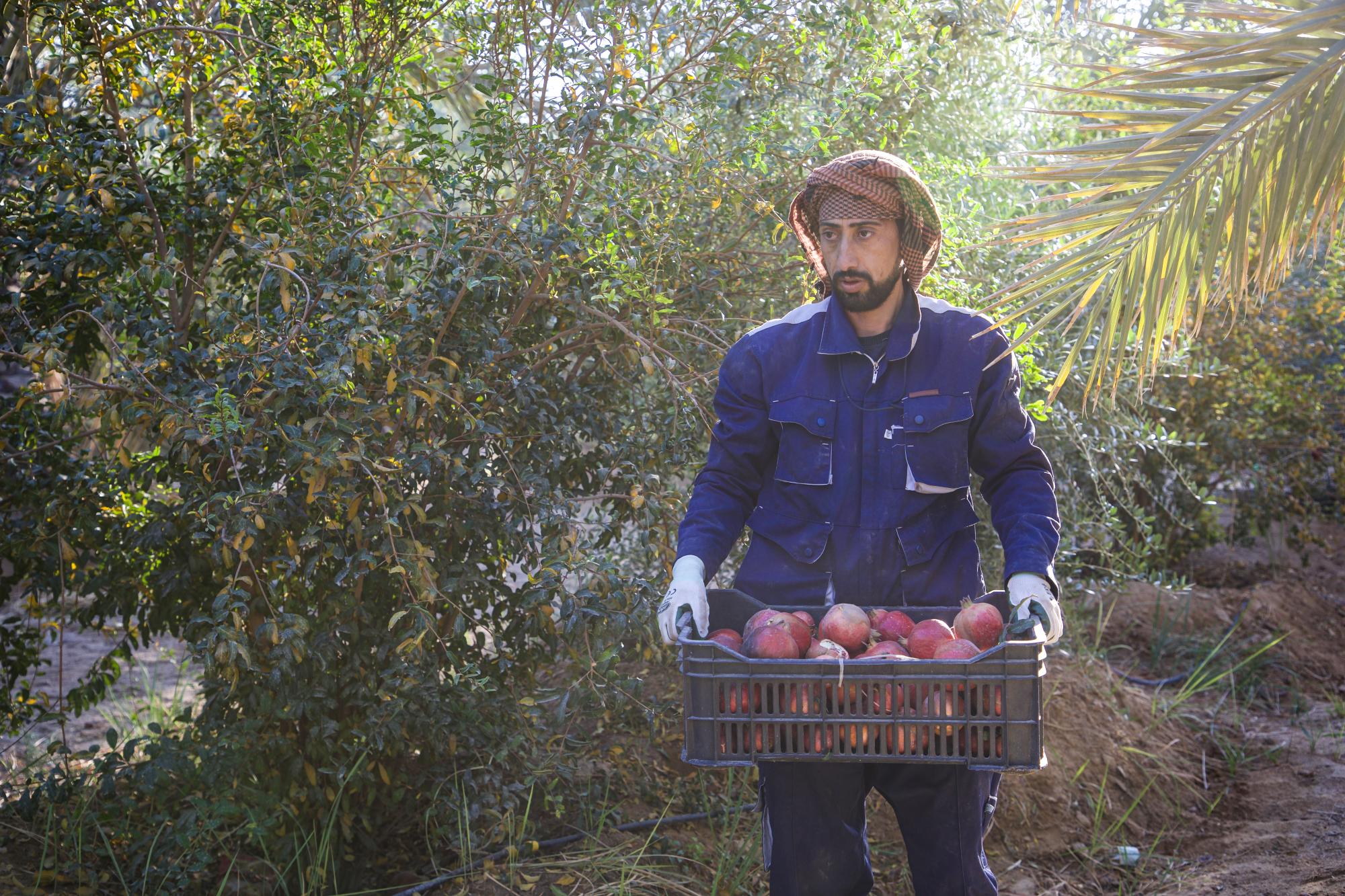 Bölümün Tarım Şubesi Sorumlusu Seccâd Hüseyin bey şunları söyledi: "Şube personeli, yerel pazarlara arz etmek ve ihtiyaçlarını karşılamak amacıyla, Bölüme ait bahçelerden bir tonu aşan miktarda nar hasadını toplamaya başladı."