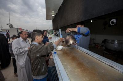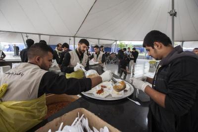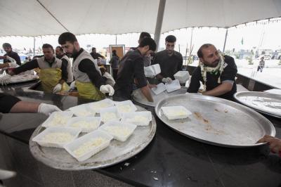 وأوضح الموسوي: "بلغت كميّة المواد الغذائية التي تمّ رصدها خلال هذه الأيام (25ألف) طن من اللحوم الحمراء والبيضاء ومواد غذائية طريّة يومياً (250كغم) ومن الرز (12) طنّاً بالإضافة الى أطنان من الفواكه والحليب السائل ومئات الآلاف من عبوات المياه المعدنية، و(2) طن ونصف من البقّوليات ومعجون الطبخ والزيوت، فضلاً عن (3) طن من السكر".