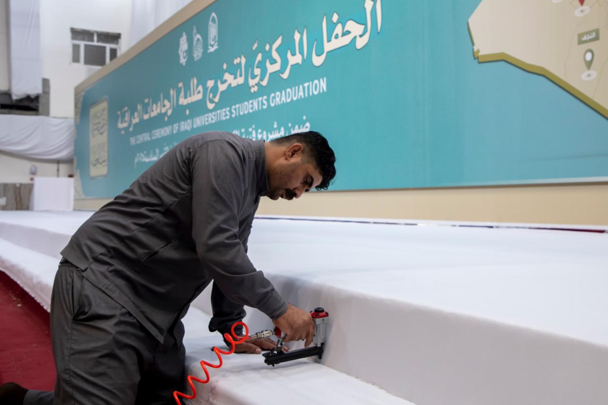 وهيأت ملاكات قسم الصناعات والحرف الفنية في العتبة العباسية المقدسة، قاعة المجمع؛ استعدادًا لانطلاق حفل تخرج طلبة الجامعات العراقية، وتضمنت الأعمال تجهيز المنصة الرئيسة للحفل وتغليفها، وتعليق البوستر الخاص به.