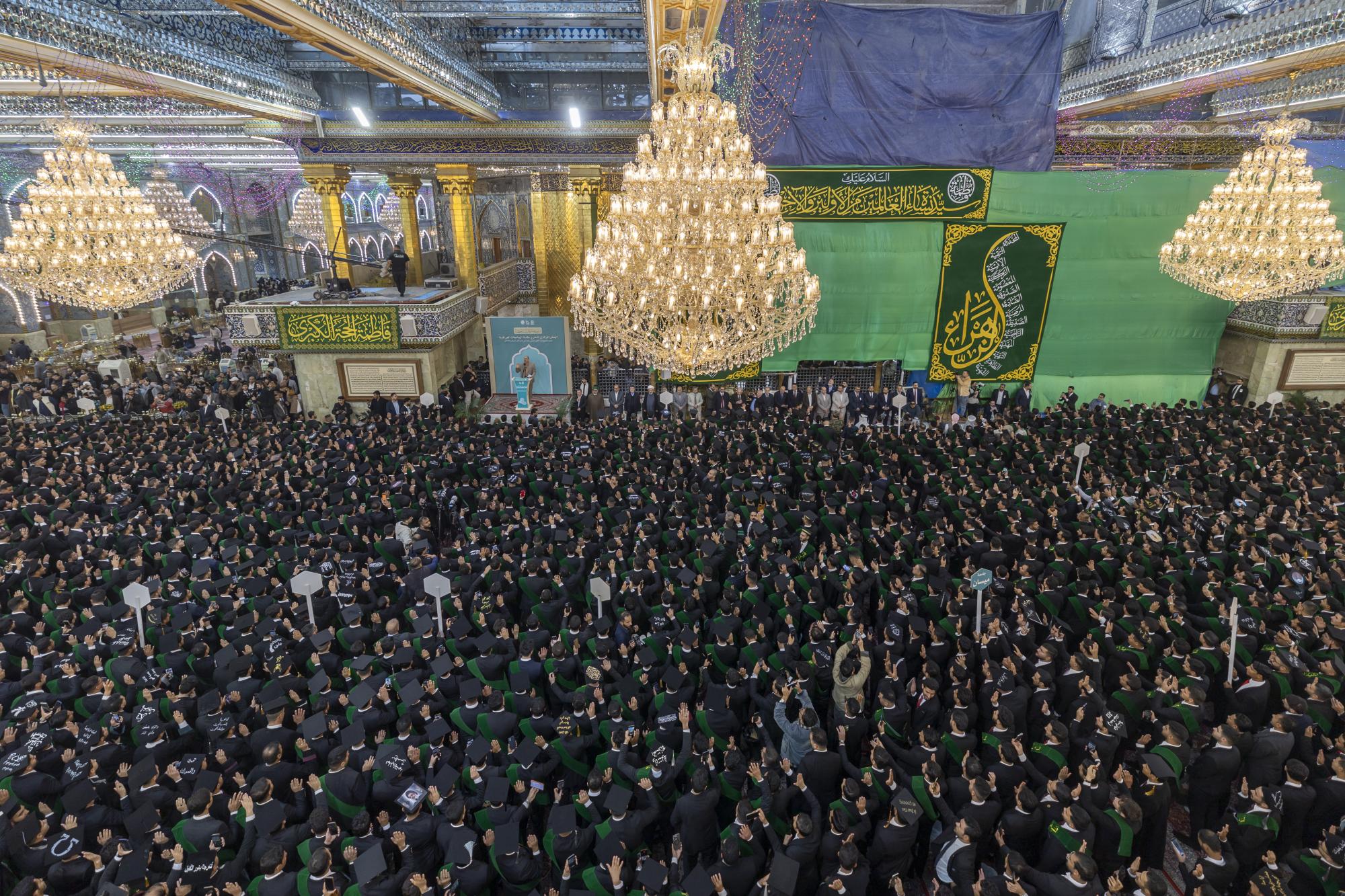 وتقيم حفل التخرج (دفعة على هدي القمر السادسة) شعبة العلاقات الجامعية والمدرسية التابعة لقسم العلاقات العامة في العتبة المقدسة، ضمن مشروع فتية الكفيل الوطني، وتحت شعار (من غيث كربلاء ينبت العطاء)، بمشاركة أكثر من 5 آلاف طالب من 75 جامعة حكومية وأهلية، من مختلف محافظات العراق.