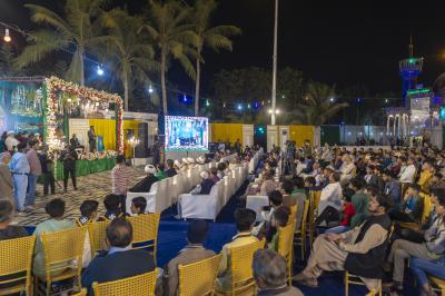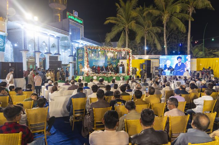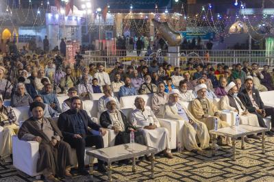 مراسم با تلاوت آیاتی از قرآن کریم توسط قاری حیدر جلوخان آغاز شد و سپس شیخ صلاح کربلایی، مسئول بخش امور دینی آستان مقدس عباسی، به ایراد سخنرانی پرداخت. همچنین، شیخ غلام عباس رئیسی از پاکستان و شیخ ناصر نجفی، نماینده آستان مقدس در این کشور، سخنرانیهایی داشتند.