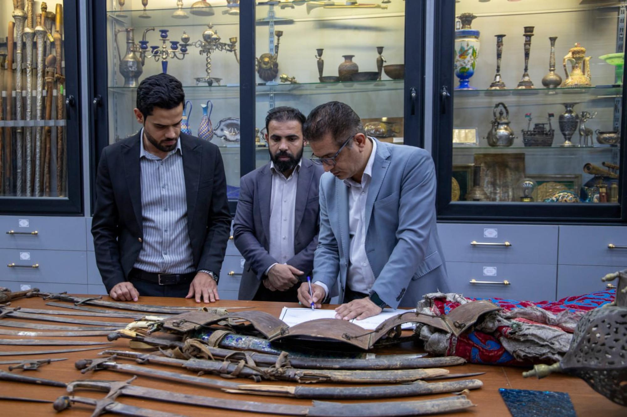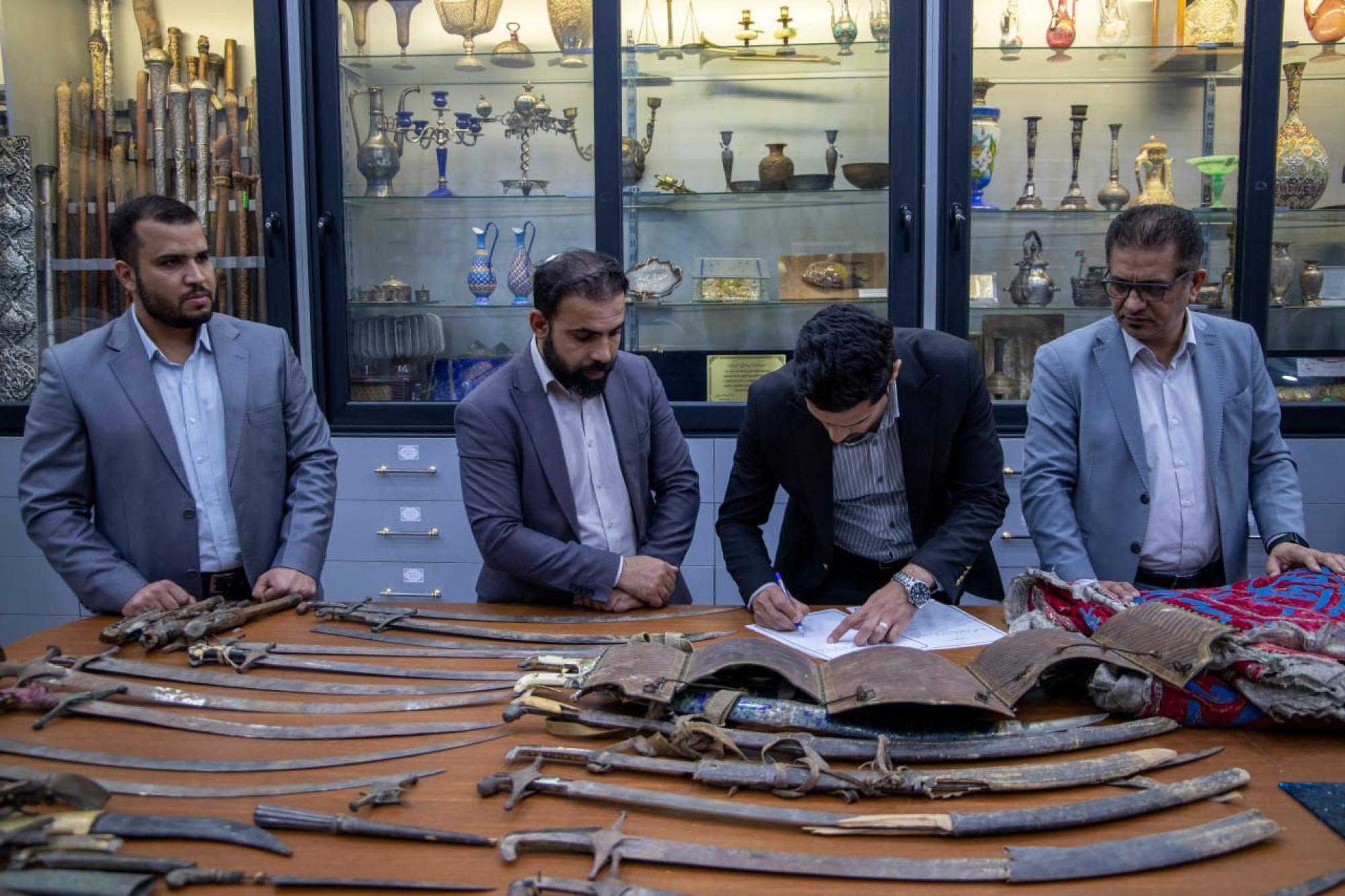 The assistant to the head of the museum department, Dr. Shawqi Al-Moussawi, said: "The second step of the cooperation agreement between the holy shrines of Al-Hadi and al-Askari and Al-Abbas (peace be upon them) was represented by receiving a new collection consisting of 50 valuable and diverse pieces presented by the delegation of the Askariyayn holy shrine."