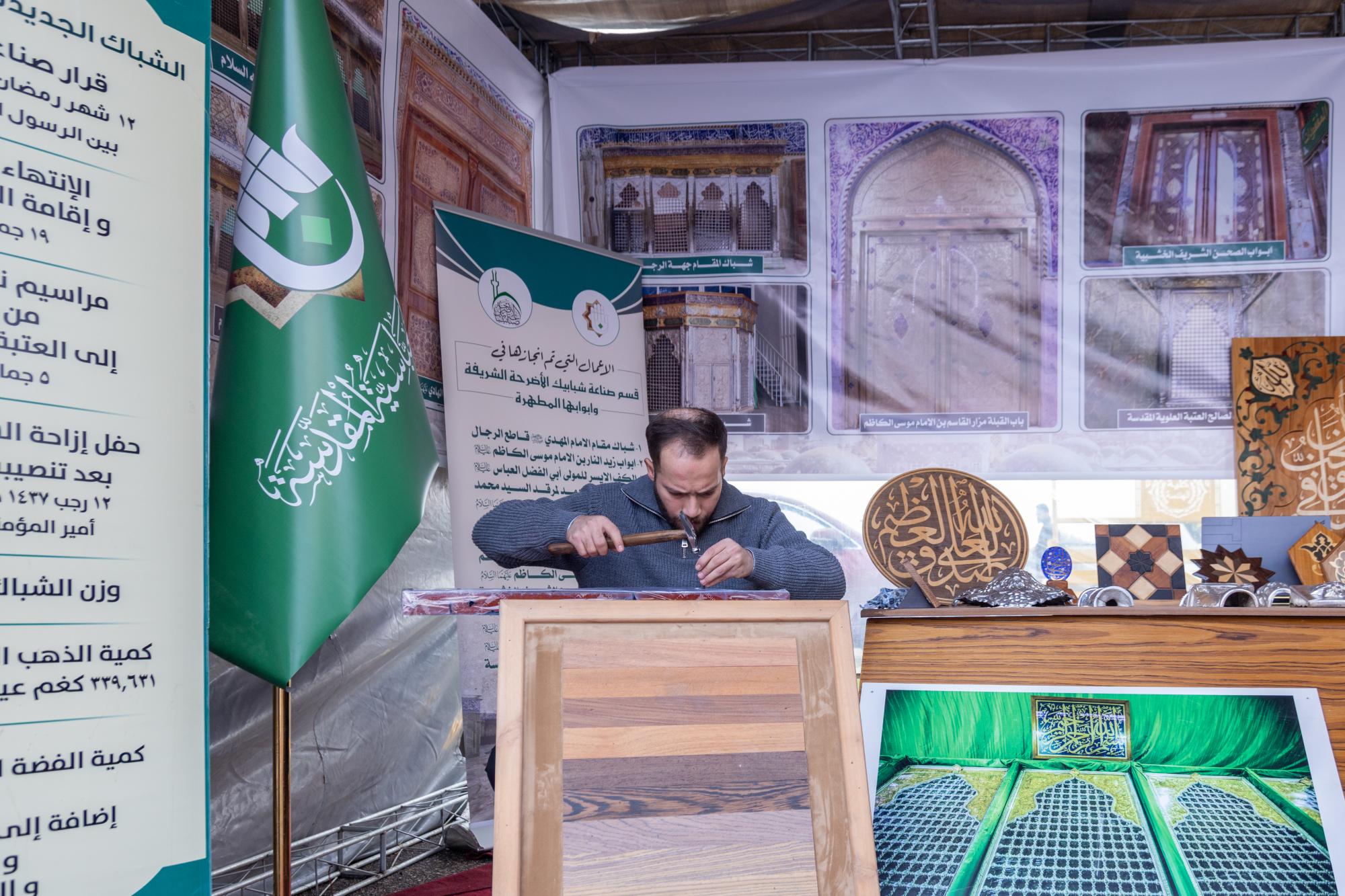 M. Ahmed Qais, représentant le pavillon du Département, a déclaré : « La participation du Sanctuaire à l'exposition "Artisanat de la construction et de l'architecture" s'est faite par le biais de son Département de fabrication des grilles, qui a présenté une collection de projets achevés, ainsi que des pièces artistiques reflétant la précision et l'authenticité de l'artisanat islamique. »