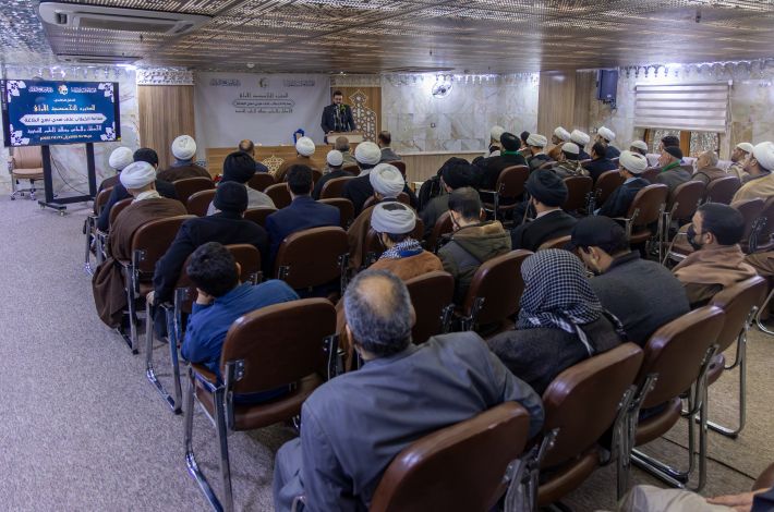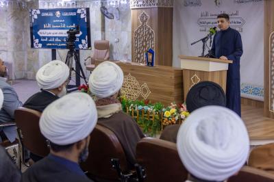 La cérémonie de clôture, qui s'est tenue dans la salle du département du sanctuaire de l'Imam al-Mahdi (que Dieu hâte son retour), a permis d'honorer le formateur, le cheikh Dr Arkan al-Tamimi, ainsi que les participants.