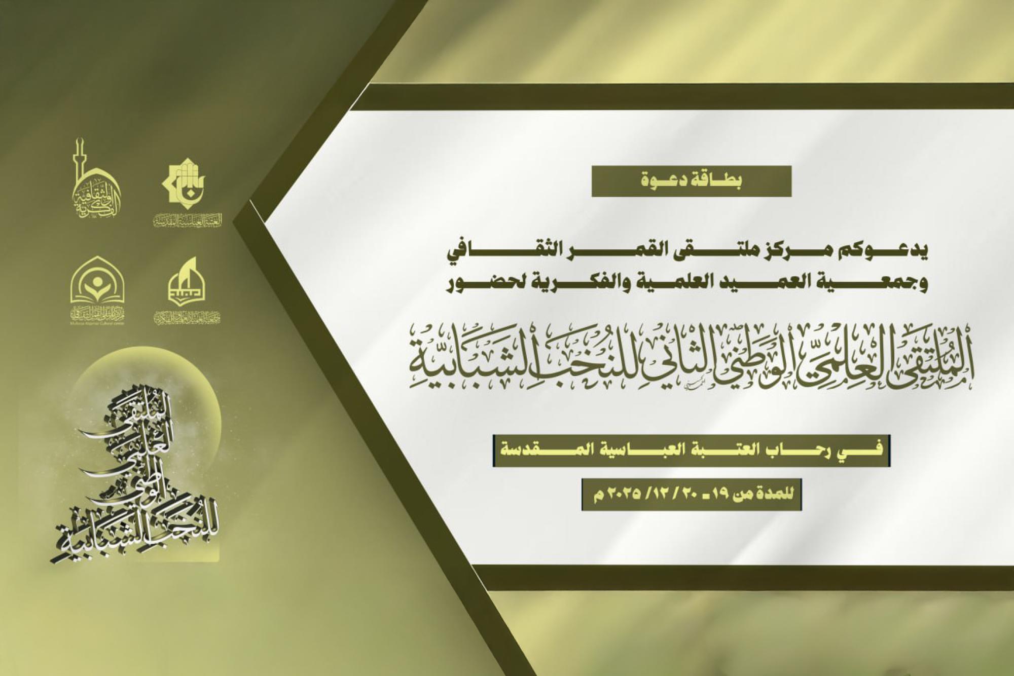تدعو جمعيَّة العميد العلميَّة والفكريَّة ومركز ملتقى القمر الثَّقافي التابع لقسم الشؤون الفكرية والثقافية في العتبة العباسية المقدسة الباحثين لحضورِ فعاليَّاتِ الملتقى العِلميّ الوطنيّ الثاني للنُّخب الشبابيَّة.
