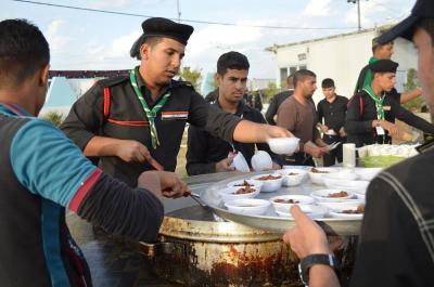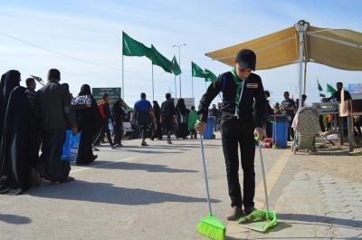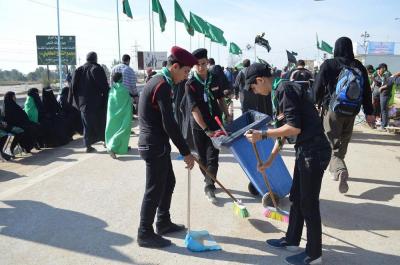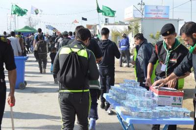 With elegant uniforms and high discipline, groups of Al-Kafeel Scouts are deployed in the Al-Kulayni service Complex for the visitors on the road to Baghdad, to offer various services to the visitors of Imam Al-Hussayn (peace be upon him)