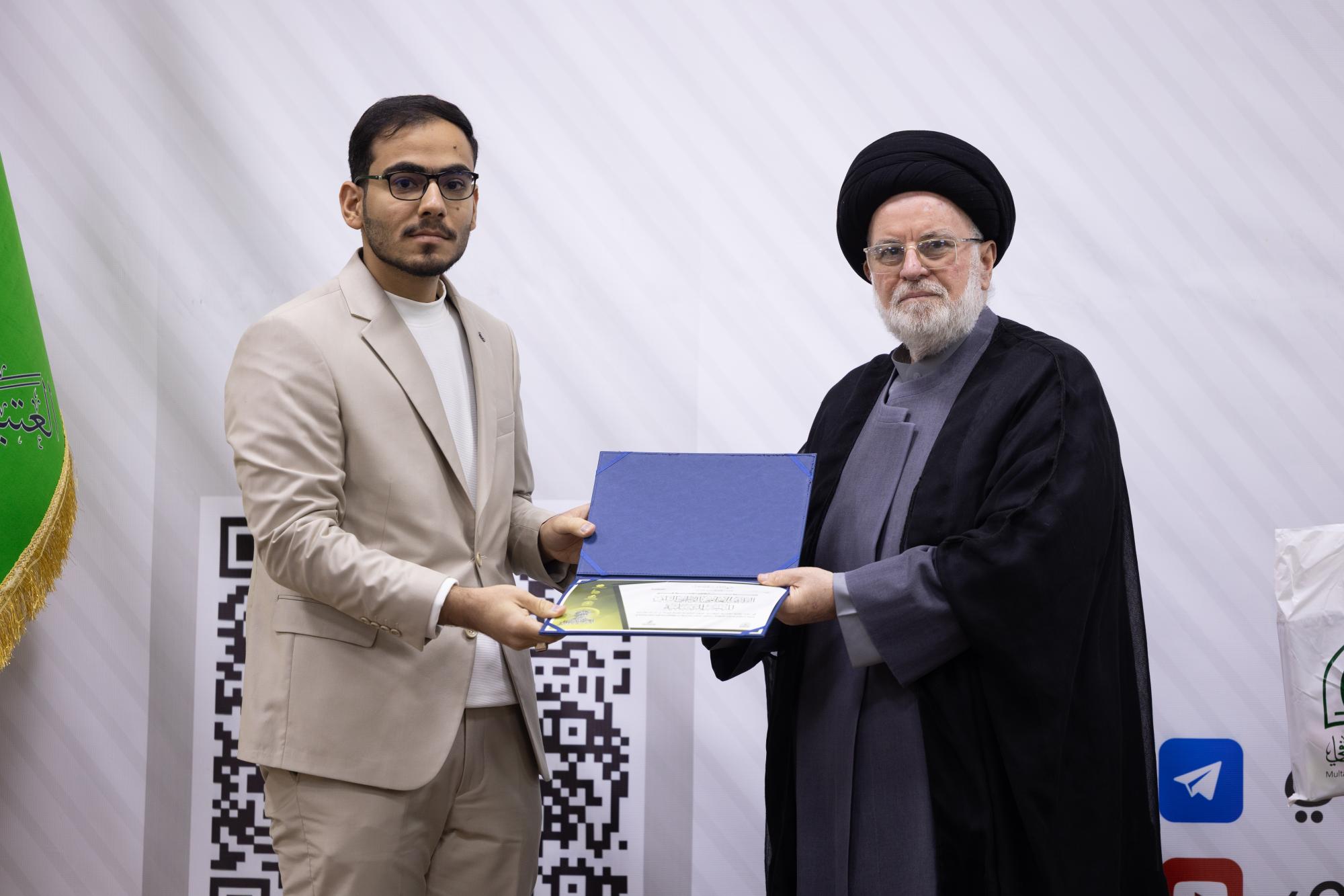 در این مراسم همچنین از سید محمد حسین العمیدی، استاد حوزه علمیه، شیخ عادل الوکیل و سید عدنان جلوخان از بخش امور دینی آستان مقدس عباسی تقدیر شد.