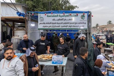 روضہ مبارک حضرت عباس(ع) کا خدماتی موکب سامراء میں مسلسل تین روز تک روضہ مبارک امام نقی(ع) و امام عسکری(ع) کے زائرین کو متنوع خدمات فراہم کرتا رہا۔