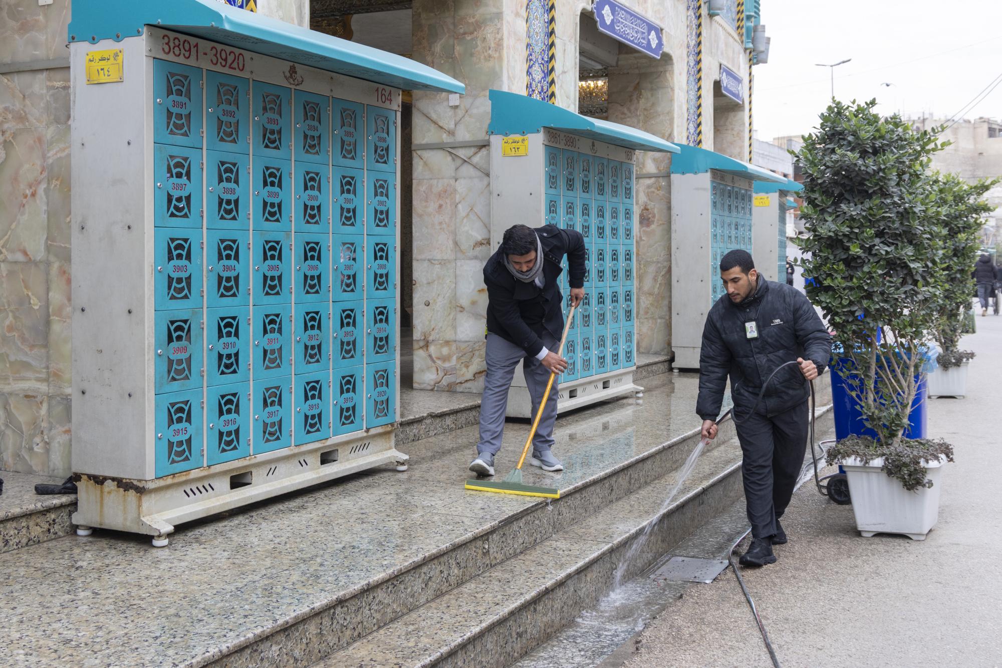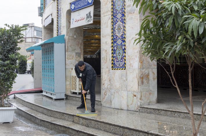 روضہ مبارک حضرت عباس(ع) کے شعبۂ امورِ خدمات سے وابستہ عملے نے روضہ مبارک کے اطراف کو دھونے اور صفائی کا کام مکمل کر لیا ہے۔