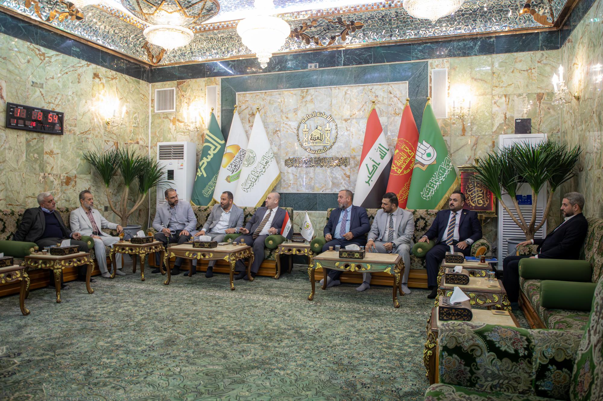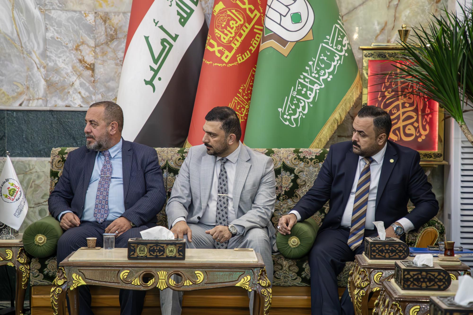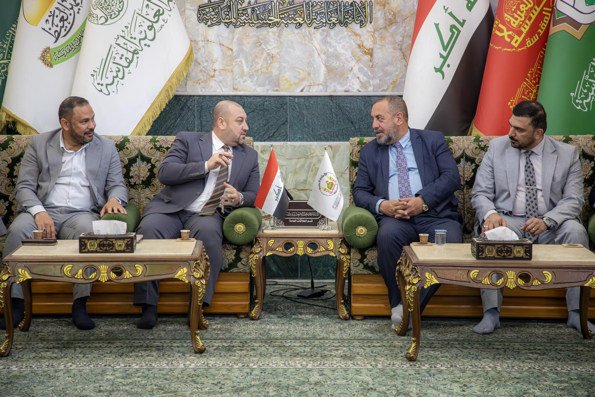 Cette rencontre a eu lieu lors de la visite de la délégation au Sanctuaire de l'Imam Al Hussein et de leur entretien avec M. Rasoul Abbas Fadala, chef du département de la sécurité.