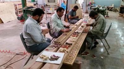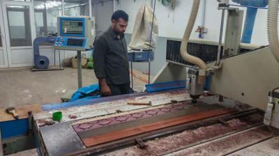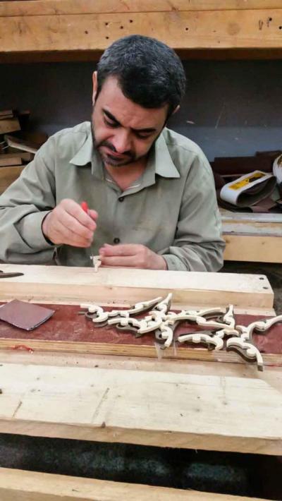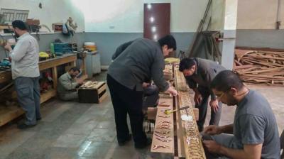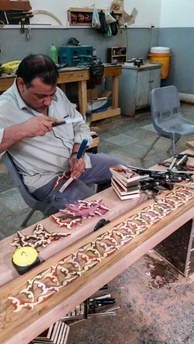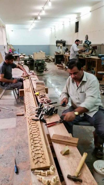 The workers in the factory of the holy shrines' grid of the Al-abbas's (p) holy shrine have finished all the works of grafting belt surrounding the Quranic inscritpions located inside the grid of Aba Al-Fadl Al-Abbas (peace be upon him) made from wood by skilled carpenters of the factory.