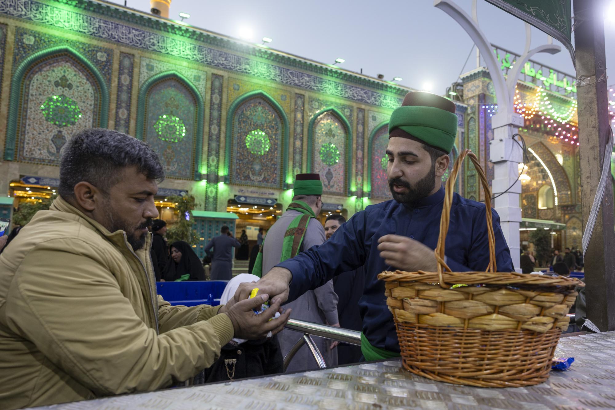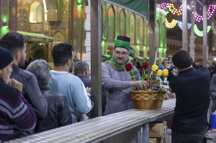 وتستقبل ملاكات الشعبة الزائرين بالتهاني والتبريكات، وتقدم عبر موكبها في شارع باب قبلة مرقد أبي الفضل العباس (عليه السلام) عددًا من الخدمات، منها توزيع الماء والشاي والحلوى والورد؛ احتفاءً بهذه المناسبة العطرة.