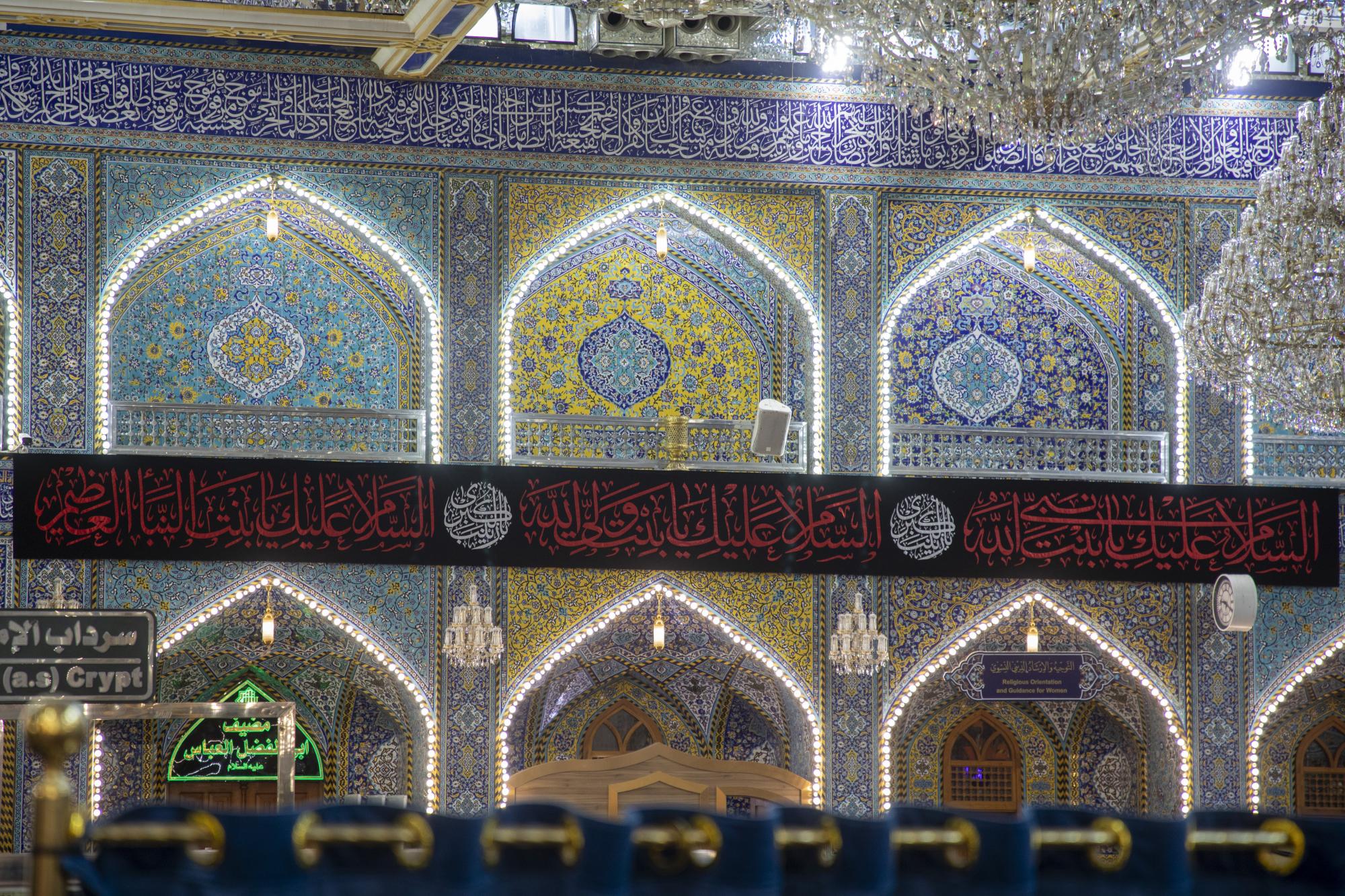 Divers espaces du Sanctuaire abbasside étaient décorés de tissus exprimant la douleur et le deuil en souvenir de cette triste occasion. Le Sanctuaire saint Al Abbas s'engage à commémorer l'anniversaire du décès de Dame Zaynab (que la paix soit sur elle) par un programme complet comprenant des cérémonies de deuil, des sermons et des séances de prière, ainsi que par la mise en valeur de son rôle dans la préservation et la diffusion du message de son frère, l'Imam Al Hussein (que la paix soit sur lui).