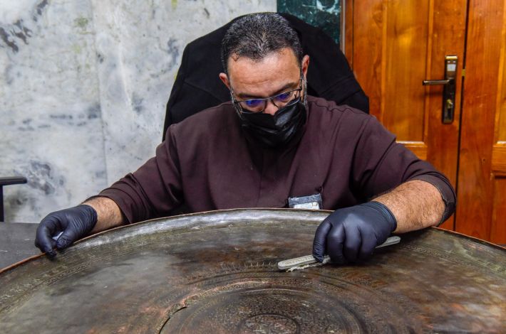 Le personnel du laboratoire du musée Al-Kafeel des Trésors et Manuscrits, rattaché au Sanctuaire sacré Al Abbas, a achevé la restauration d'un vase rare datant de l'époque safavide, il y a plus de trois siècles. Les travaux de restauration ont consisté à nettoyer la pièce et à traiter les effets du temps et des facteurs environnementaux, tout en préservant ses inscriptions originales, notamment le nom du fabricant (Muhammad ibn al-Hajji Darwish Abaji) et la date de sa création (1131 AH).