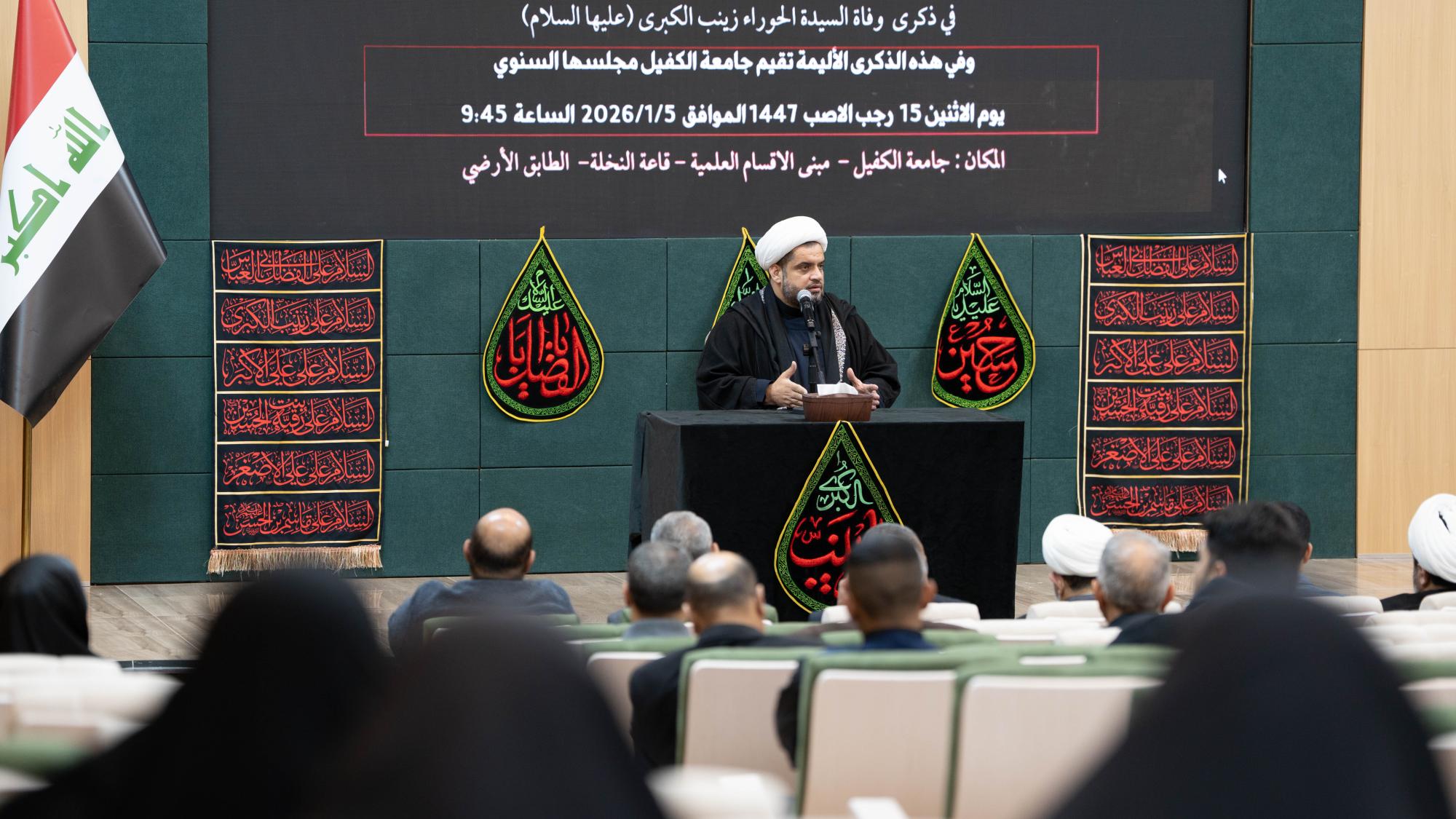 دانشگاه الکفیل به مناسبت سالروز وفات حضرت زینب کبری (علیها السلام)، مجلس عزاداری سالانه خود را برگزار کرد.