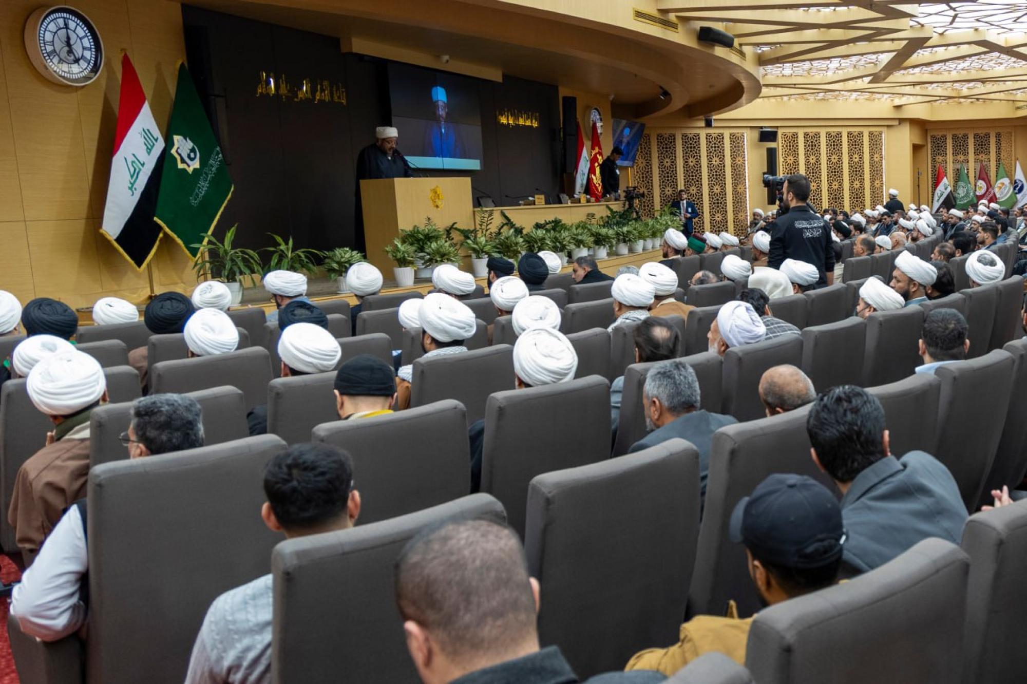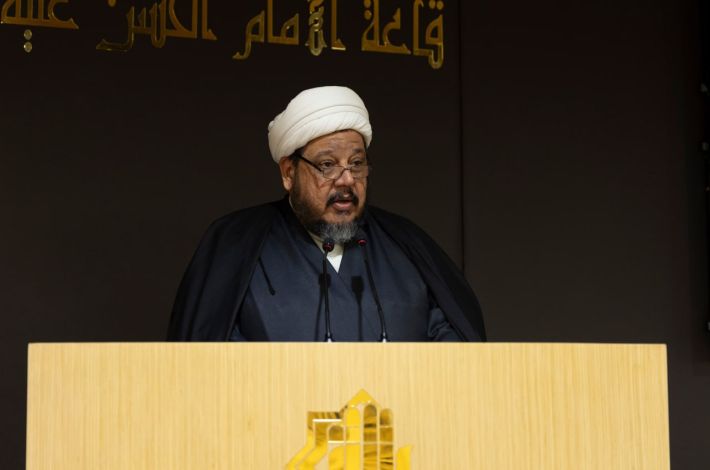 وقال العقابي في كلمته: "يشكل تراث علماء الإمامية ذخيرة علمية وفكرية فريدة، إذ حفظت مؤلفاتهم ومخطوطاتهم النفيسة معالم مدرسة راسخة في العلوم الإسلامية، ولقد أسهم هؤلاء العلماء في بناء صرح معرفي متين امتد أثره عبر القرون، فكان مرجعًا للأجيال ومصدرًا لإشعاع حضاري يثري الفكر الإنساني".