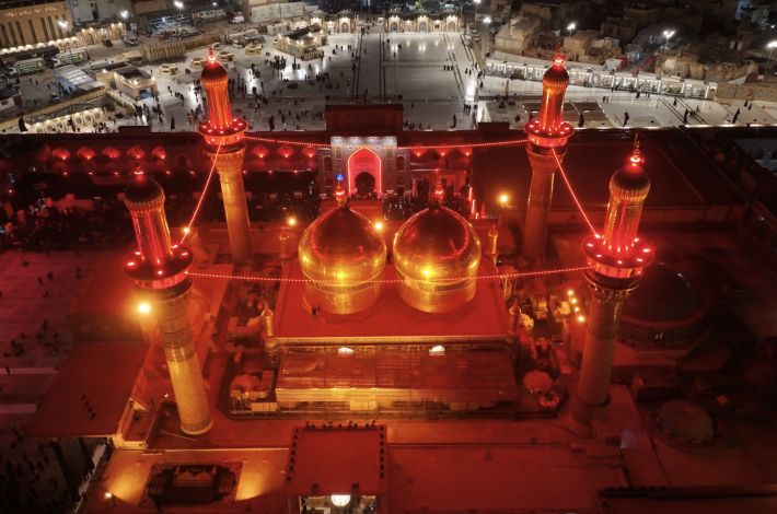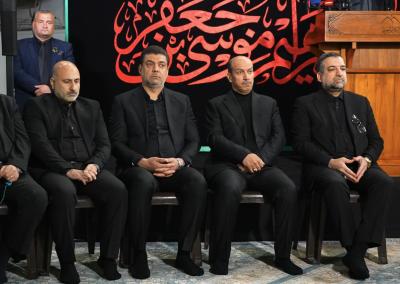 Le sanctuaire sacré Al Kadhimiya a été le théâtre de la cérémonie de remplacement des drapeaux des deux dômes des Imams Al-Kadhim et Al-Jawad (que la paix soit sur eux) par des drapeaux noirs de deuil, dans une atmosphère religieuse empreinte de tristesse et de chagrin, en souvenir de la grande tragédie et de ce à quoi l'Imam Al-Kadhim (que la paix soit sur lui) a été exposé, en expression de condoléances et de sympathie en cette douloureuse occasion.