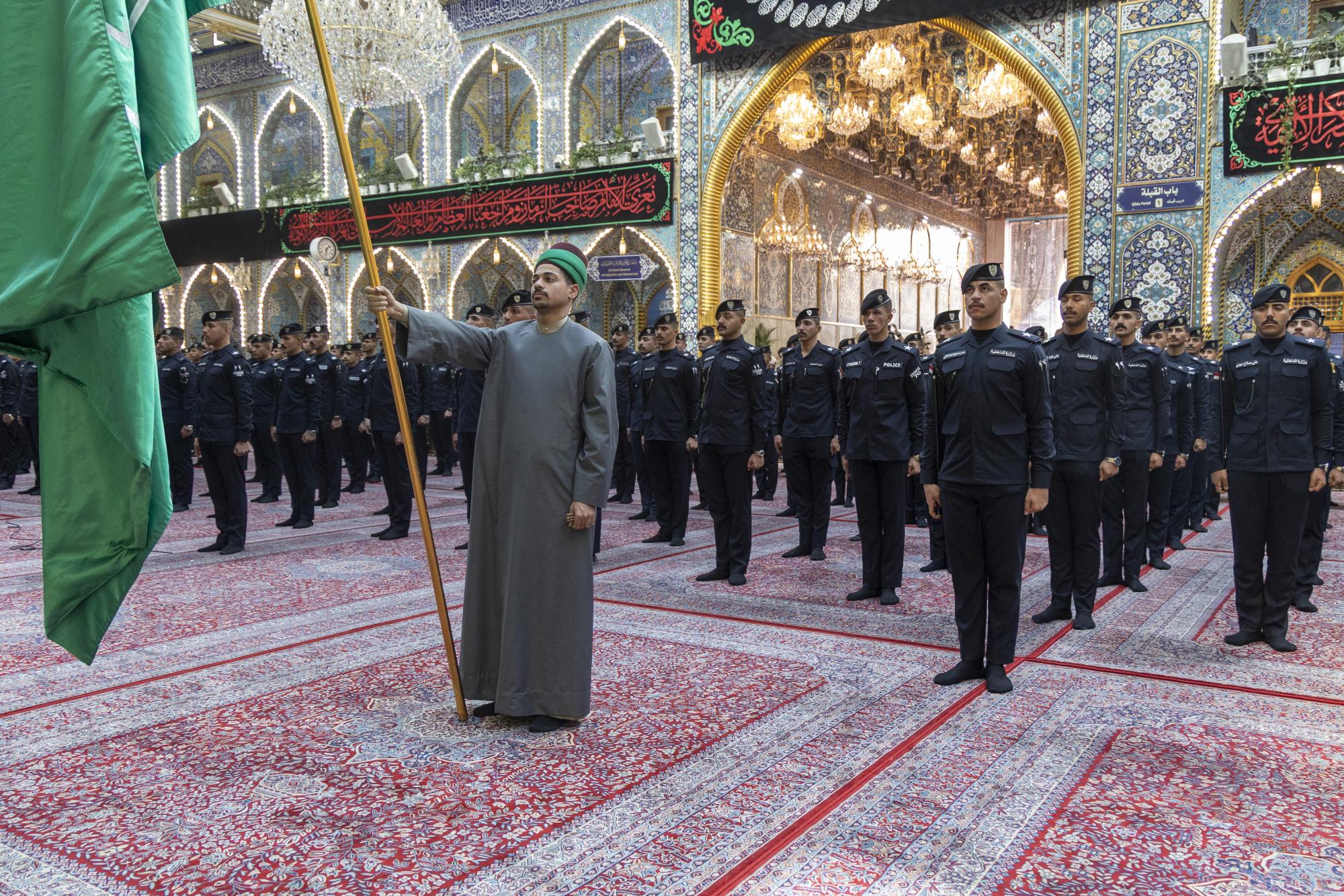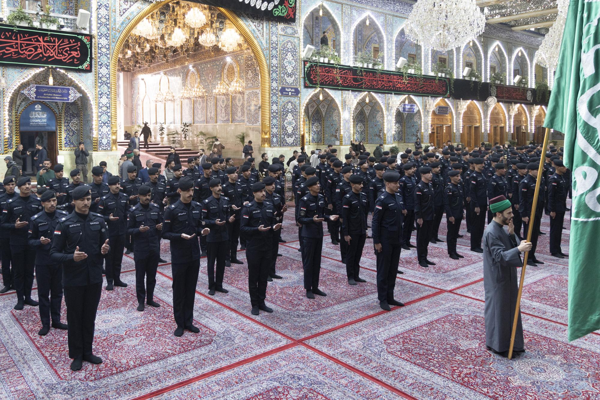 Ce lieu saint a accueilli un groupe d'officiers de la 70e promotion, représentant différentes provinces irakiennes, venus prêter serment d'allégeance à la nation.